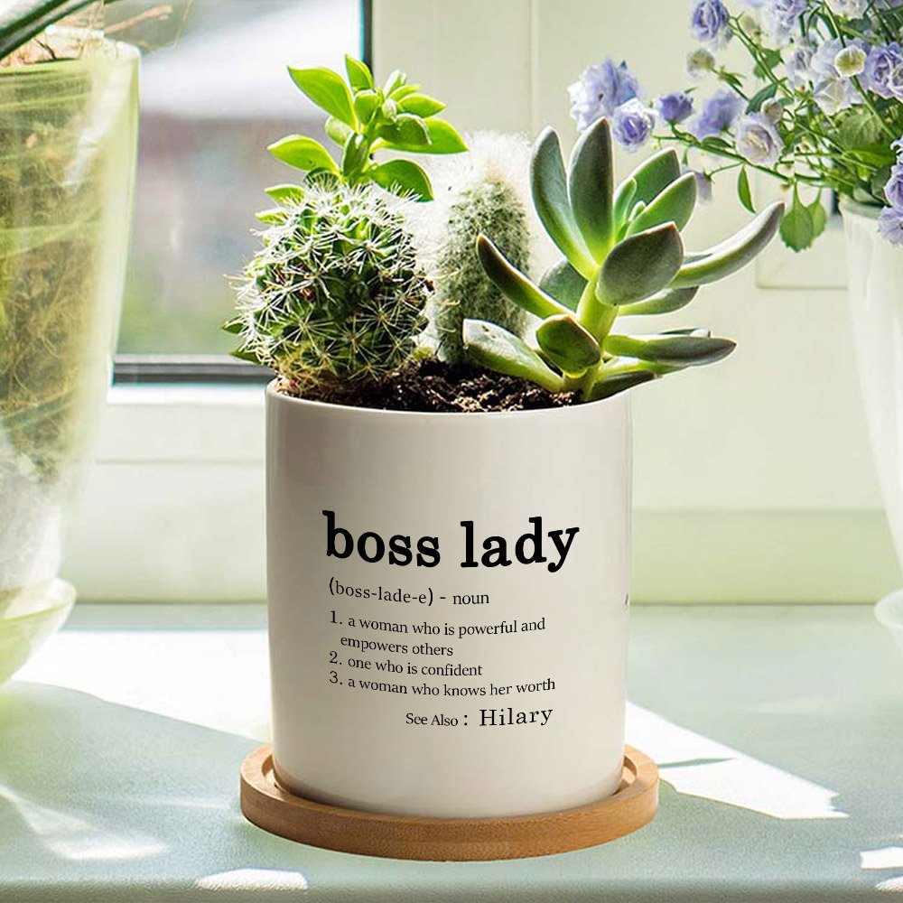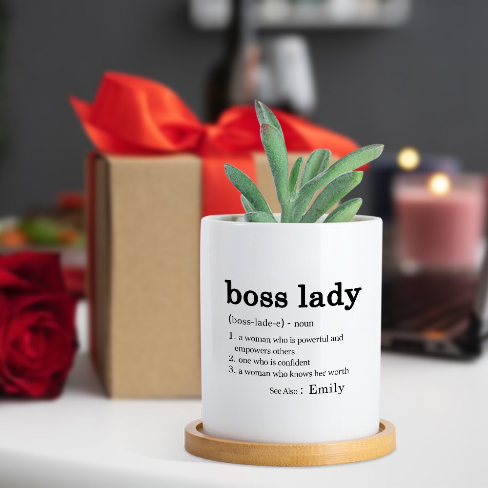 Add a personal touch by customizing the pot with the female boss's name, which makes it an extra-special gift that highlights her unique role as a leader and shows your appreciation for her hard work and achievements.