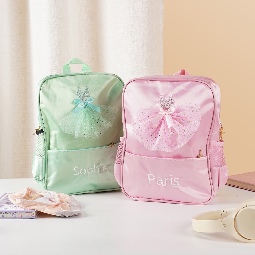 This backpack adopts a sweet ballet theme design, and the front of the backpack is decorated with a delicate ballet skirt pattern, adding cuteness and elegance. You can also customize it with your child's name to create a unique backpack that stands out.