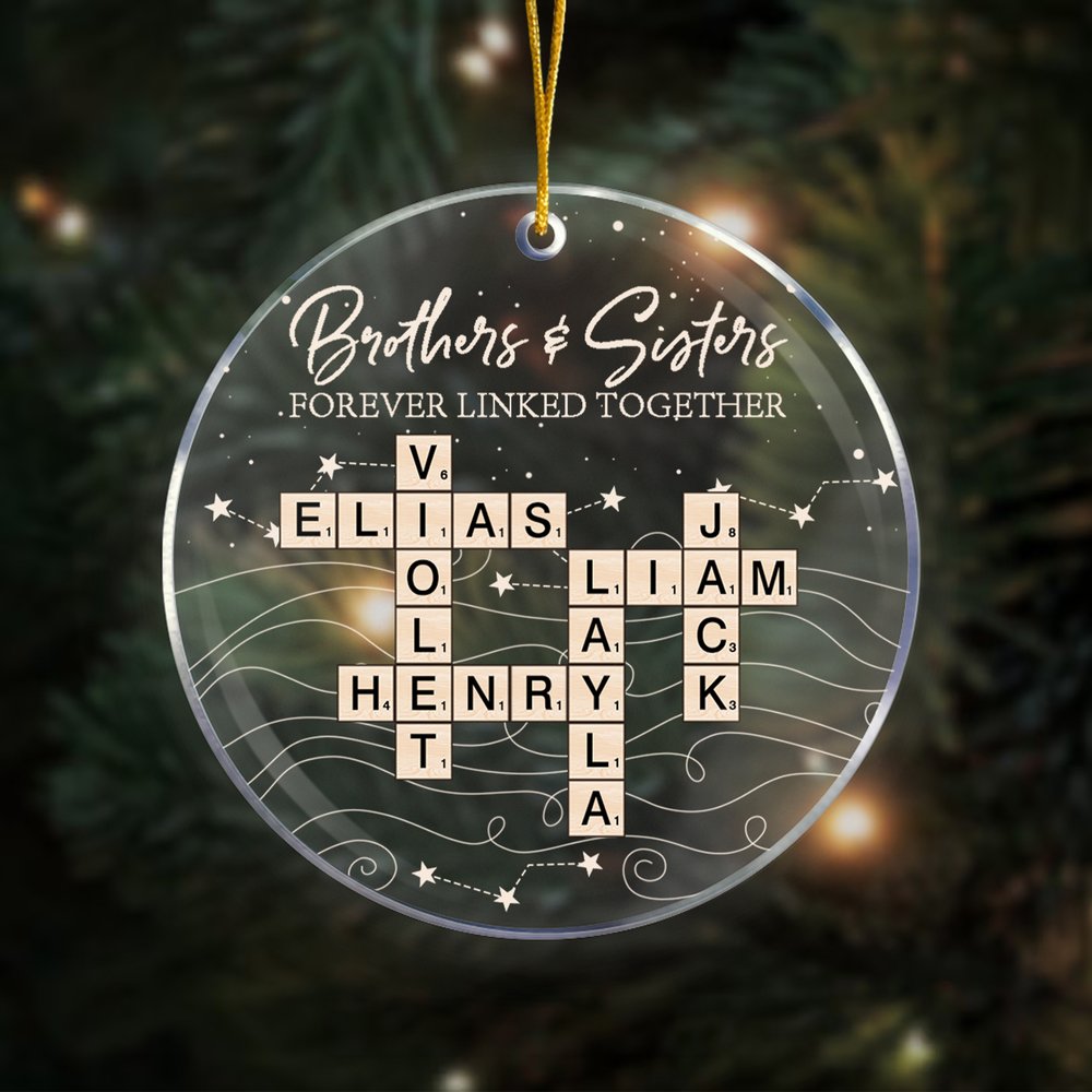 Designed specifically for Christmas decorations, this ornament features a transparent acrylic with a fresh, modern sheen. Its key highlight is the ability to customize the names of family members (such as siblings or children), automatically arranging them into a fun crossword puzzle pattern, transforming an ordinary Christmas tree ornament into a vessel of personal memories.