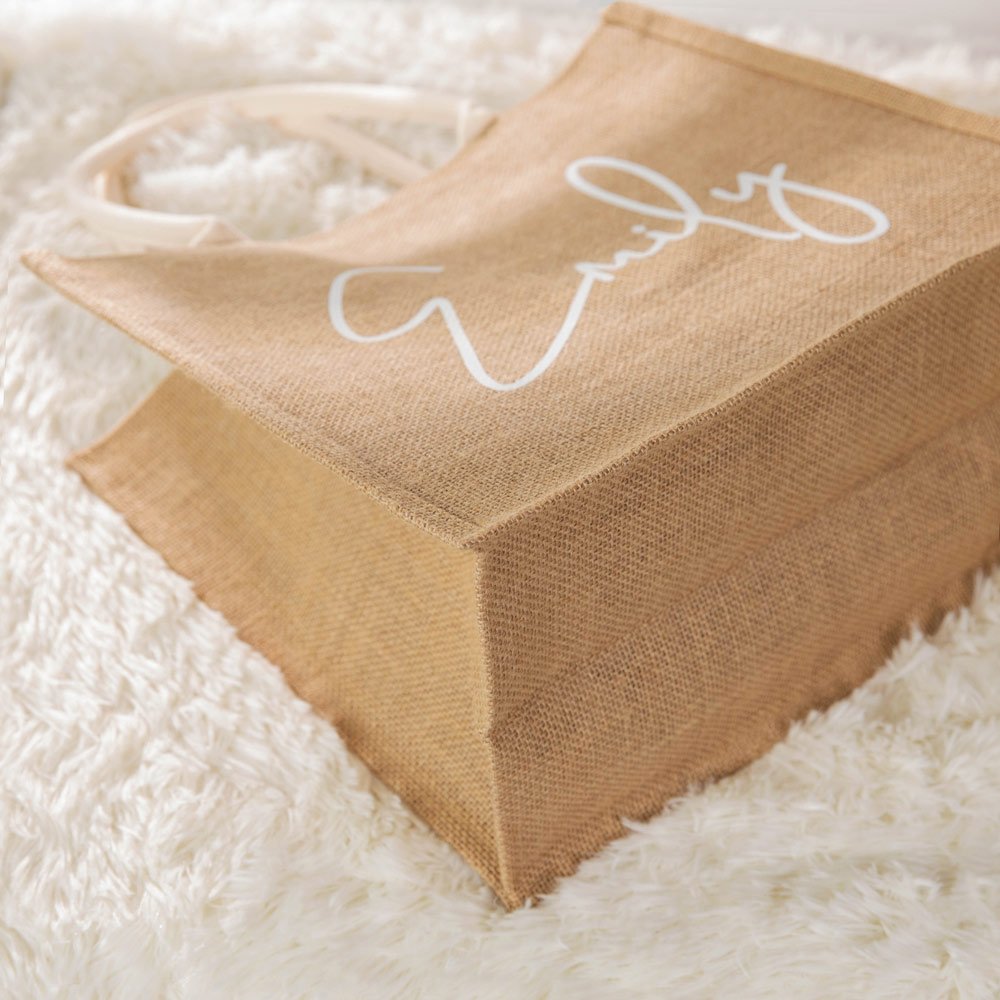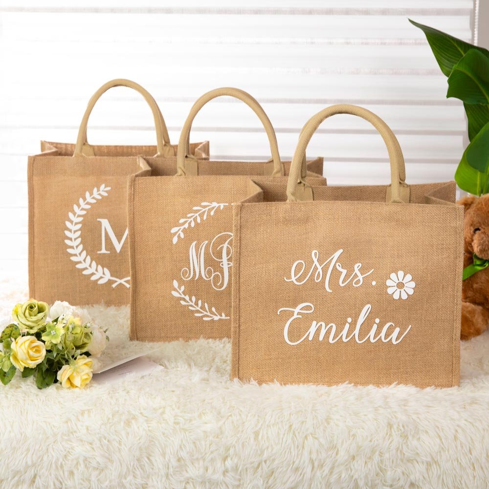 • Burlap Tote Bags: These burlap totes are designed with large open pocket compartment for convenient and quick access to food, wallet, phone, sunglasses or other items inside. Various styles are optional, you can customize the name and choose the font colour you like.