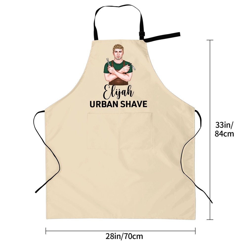 This barber apron features a Personalised clipart design, incorporating classic barbering elements such as scissors, combs, and spray bottles, vividly displaying the characteristics of the industry. The reserved custom area on the chest can be printed with your name and exclusive cartoon character image, giving the apron a unique charm that can not only highlight the professional identity of the barber, but also increase brand recognition for the hair salon, easily creating an eye-catching highlight.