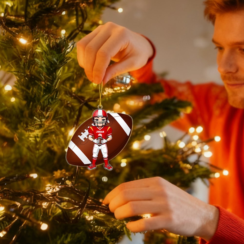 It's the perfect decoration for Christmas trees, adding a unique touch with its adorable cartoon design and personalised elements; it can also be used as home decor, hanging in the living room, on a bookshelf, or by a windowsill to enhance the ambiance. Furthermore, it's an ideal collectible for American football lovers.