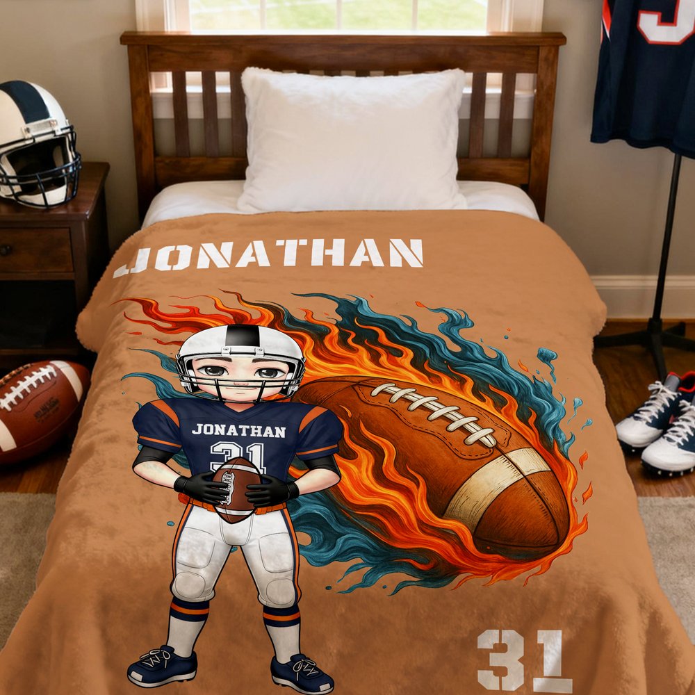This personalised football blanket is a thoughtful gift for football lovers, players, family, or friends—perfect for birthdays, Christmas, game day celebrations, or as a “just because” present. The custom cartoon player, name, and number show you’ve put care into the gift, making the recipient feel seen and celebrated in their passion for the sport.