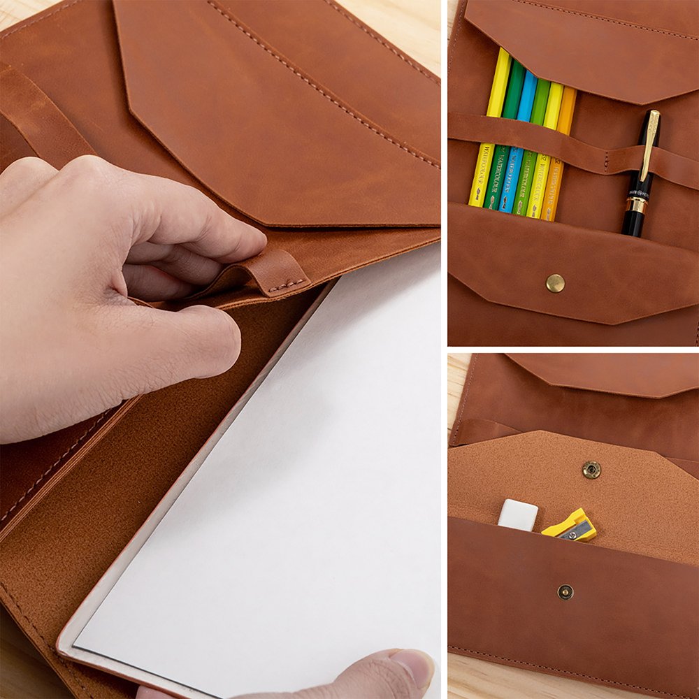 In addition to providing excellent protection, this notebook cover features multiple functional pockets for storing stationery, notes, and other study essentials. Its flexible design allows you to efficiently organize your tools during learning, work, or creative writing sessions, ensuring a smooth writing experience. Whether in the classroom, office, or at home, it meets a variety of needs with ease.
