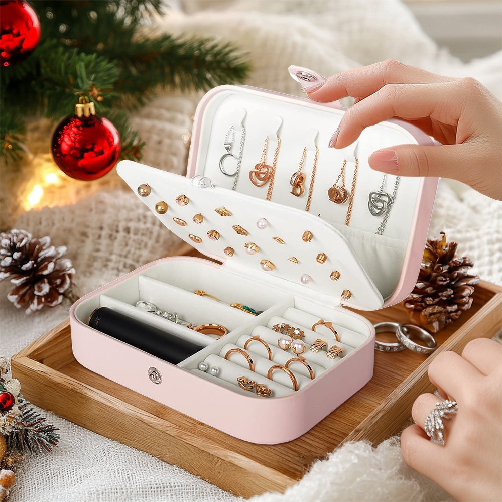 Our jewellery boxes are small and lightweight, perfect for traveling. Whether traveling or going to the office, this box is easy to fit into any bag or suitcase. And this jewellery box has different compartments and partitions, earrings, necklaces, rings, bracelets, etc., will have a fixed storage location, so that the jewellery is no longer messy.