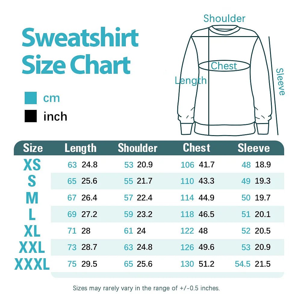 | Measurement: | T-shirt - XXS, XS, S, M, L, XL, 2XL, 3XL Sweatshirt - XS, S, M, L, XL, 2XL, 3XL |