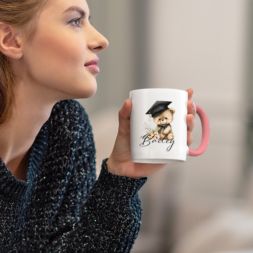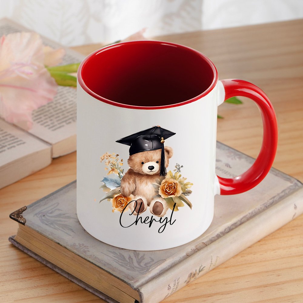 The front of this mug features a cartoon graduation bear design, available in four design styles. The cute bear wears a graduation cap and is surrounded by flowers, showing its beauty. You can add the graduate's name to it, making it a unique work of art that both highlights personality and conveys warm wishes.