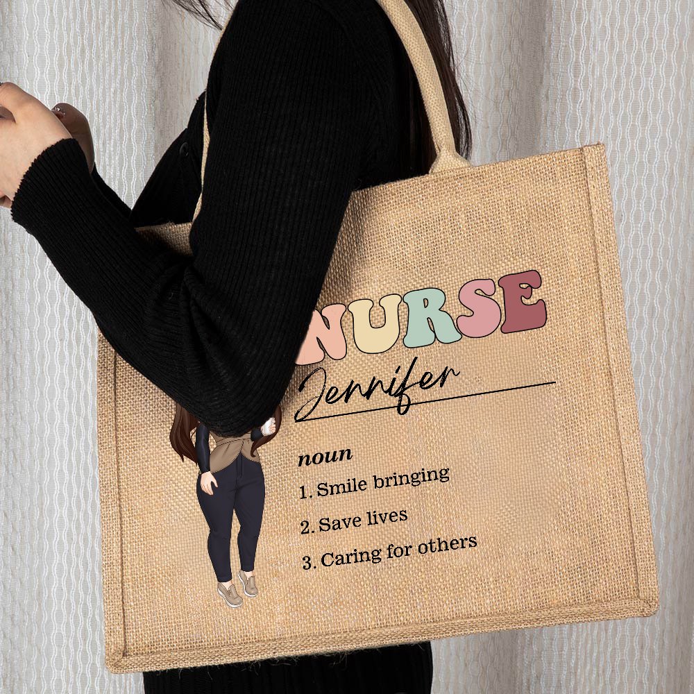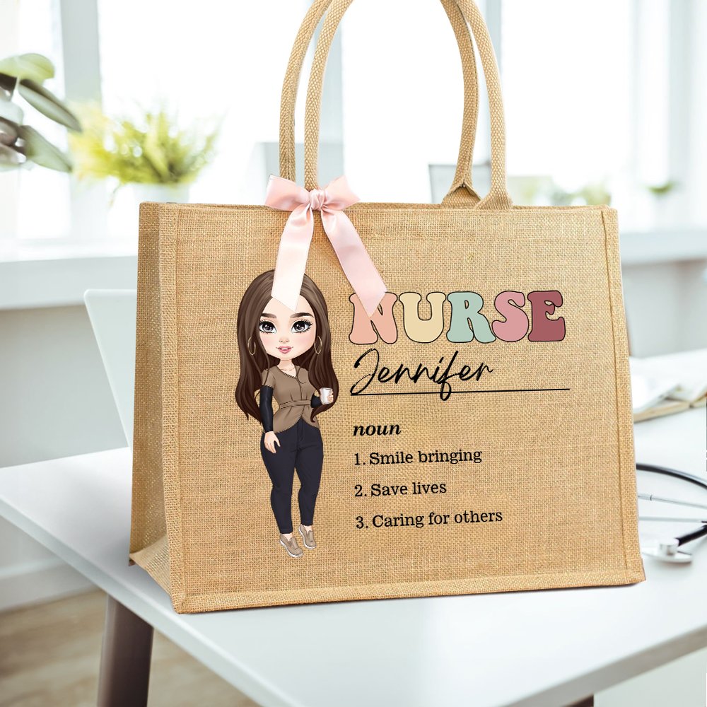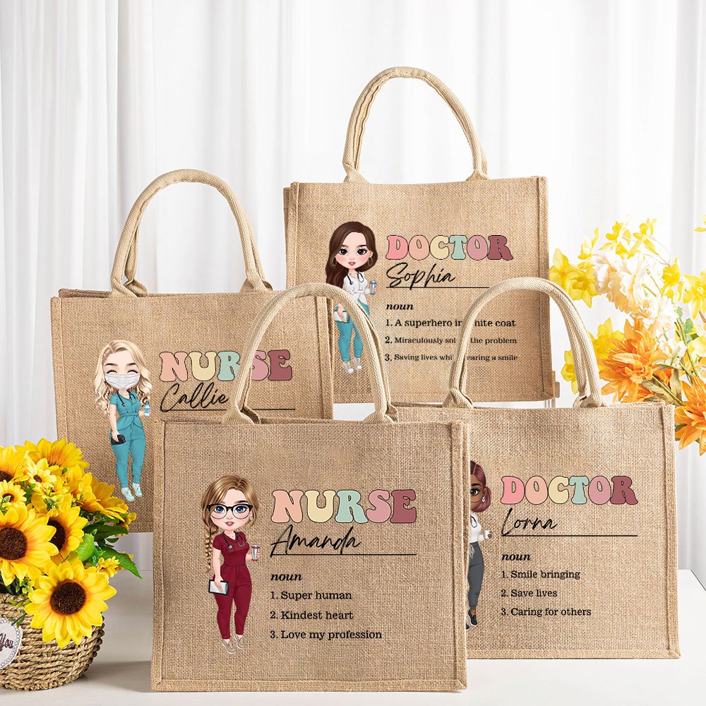 Personalised Cartoon Medical Character Large Jute Tote Bag with Title and Nouns Medical Day Birthday Gratitude Gift for Nurse Doctor