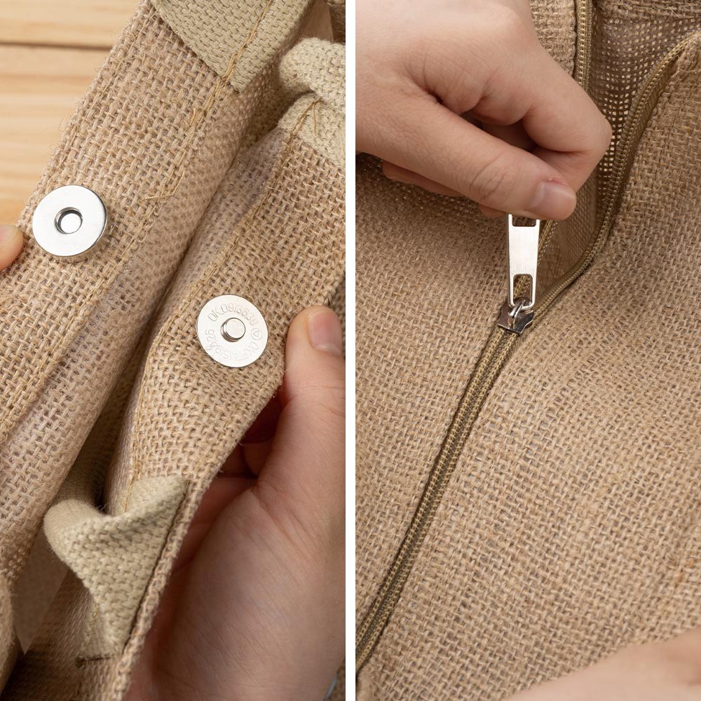 Our bags are made of eco-friendly jute, which looks stylish and aligns with environmental protection principles. Jute is known for being durable, breathable, and resistant to wear. It's easy to carry and perfect for daily shopping, travel, or any adventure.