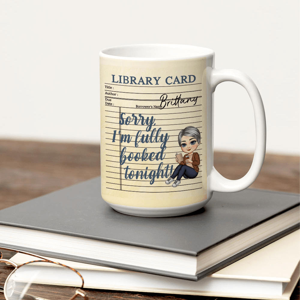 Personalised Cartoon Reading Character Ceramic Mug and Coaster Set with Name Birthday Reading Club Gift for Book Lovers Women