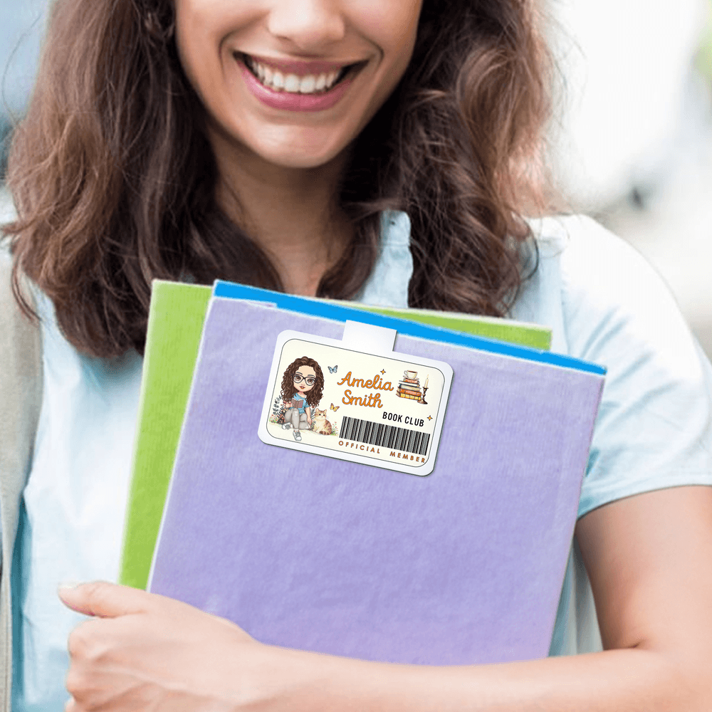 This charming bookmark features a female cartoon character and allows for personalization with the recipient's name and surname. The delightful imagery, combined with a book theme, makes it a perfect accessory for students, teachers, and reading enthusiasts, adding a touch of creativity to their learning and office spaces.