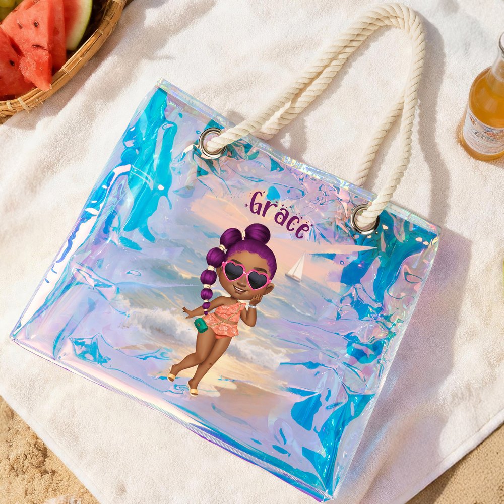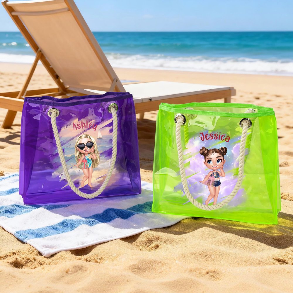 This tote bag is printed with personalised trendy cartoon girls in swimsuits or cool summer clothes, full of fashion. It has 4 bright colours, such as colourful, purple, pink, and green, each colour is bright and eye-catching, adding a touch of bright scenery to the summer. You can also customize your name on the bag to make it a unique and personalised item.
