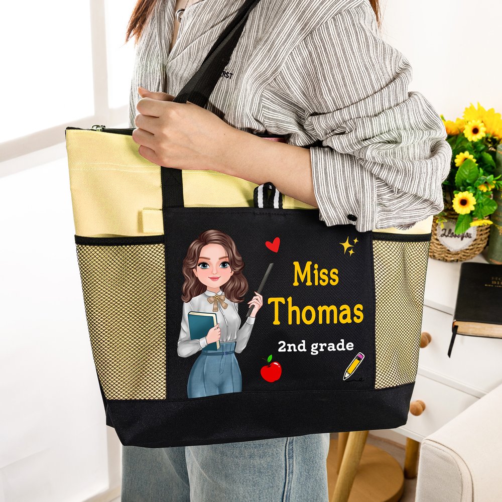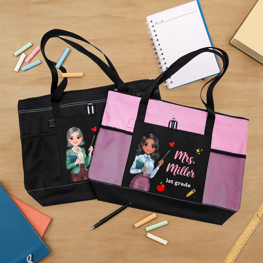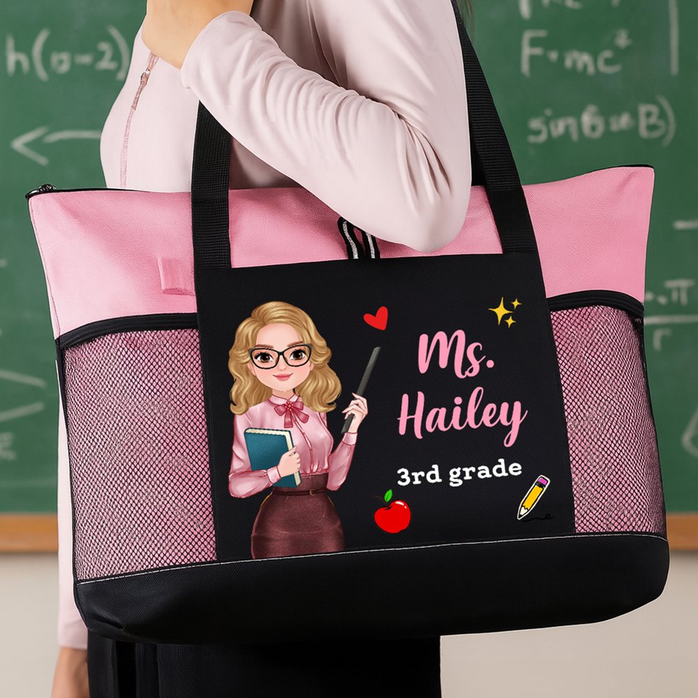 This bag is inspired by an education theme, featuring a cute cartoon teacher as the focal point. The bag is cleverly embellished with an apple, symbolizing knowledge and achievement; a star, representing a guiding star; and a pencil, symbolizing the daily life of teaching. The overall style is playful yet dignified. Customizable characters and names are also available, making each bag a unique professional memento, showcasing the unique charm of the education industry and the spirit of teachers.