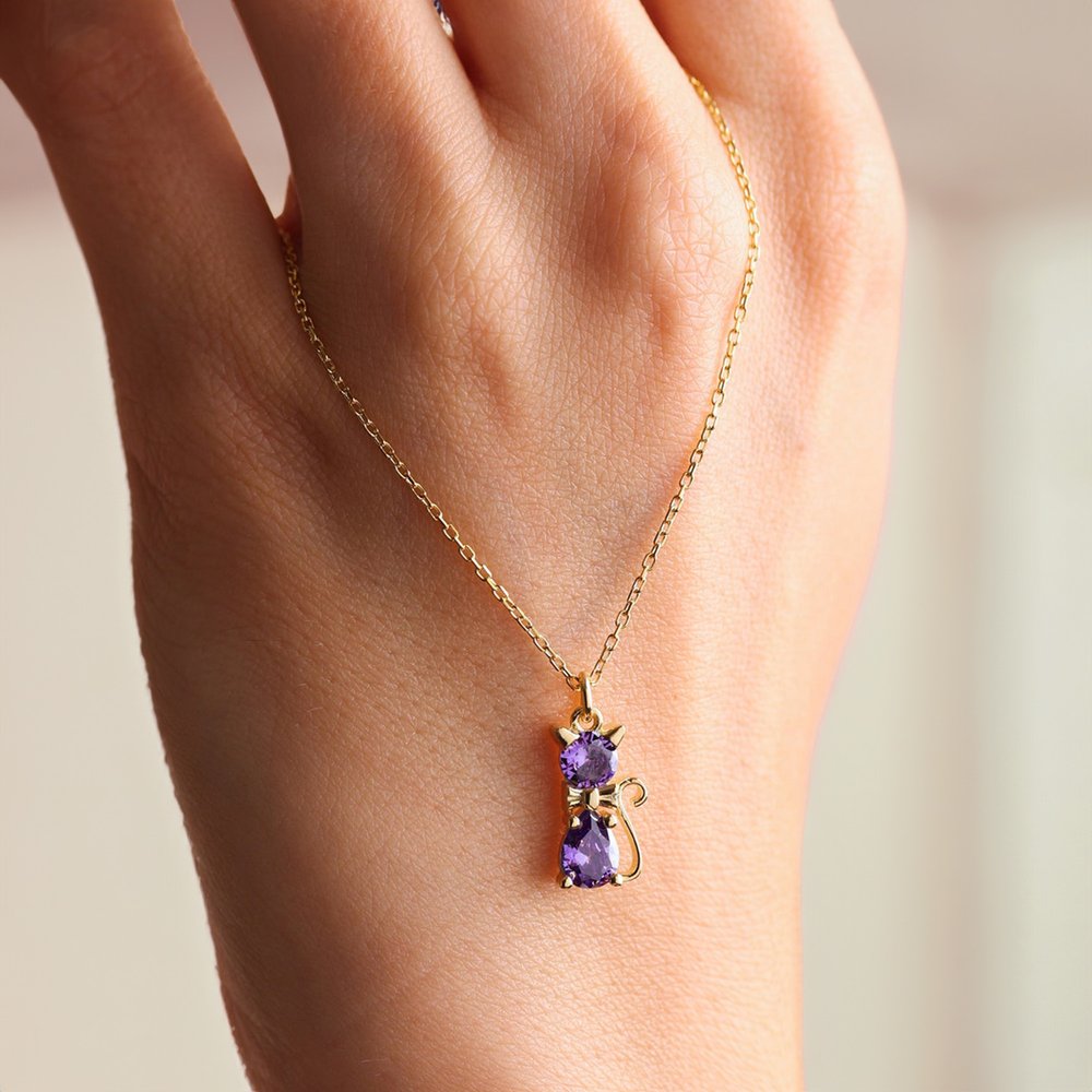 The necklace showcases an adorable cat or dog design, complete with a charming bow knot. The playful and cute design adds a whimsical element to the necklace, making it a delightful accessory that captures the love and affection between pets and their owners. What's more, This customization option allows you to select the birthstone that holds personal significance, adding a personalised touch to the jewellery.