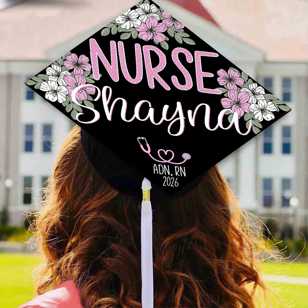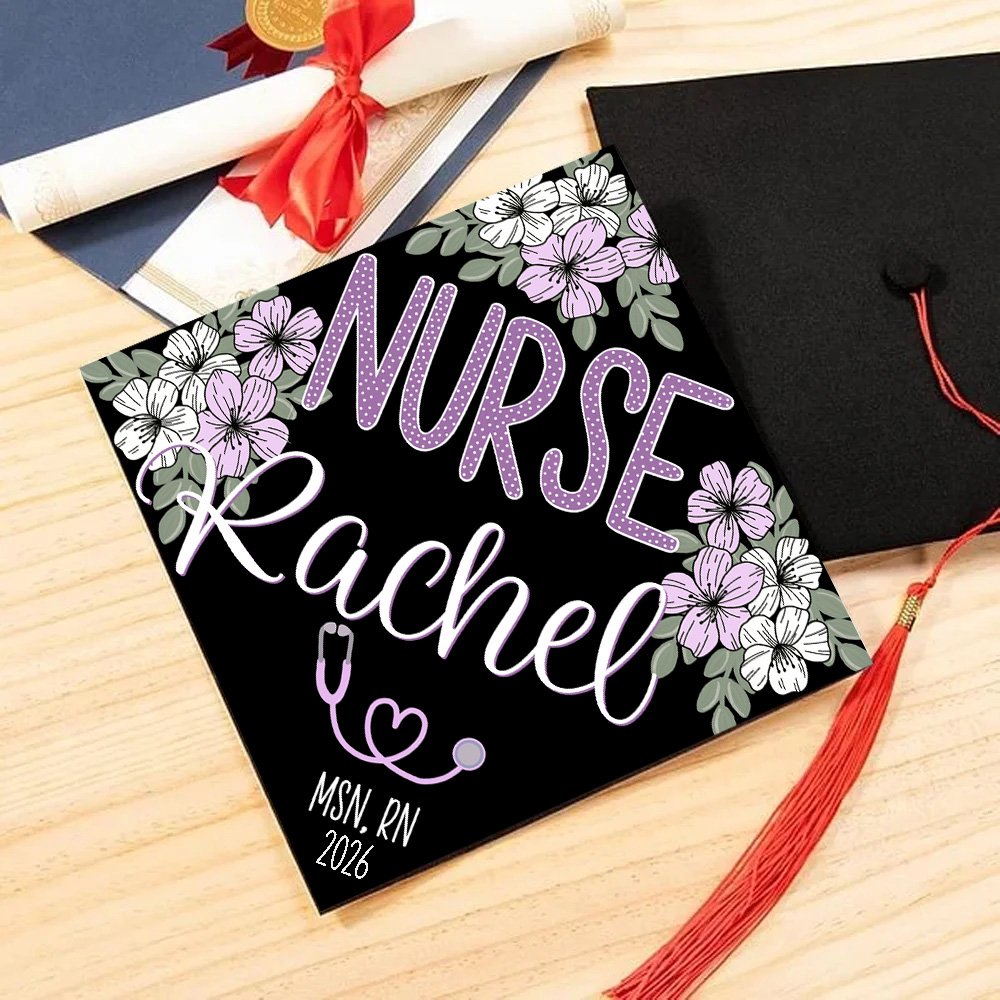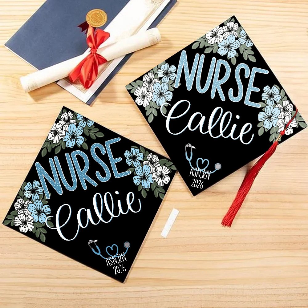 This cap topper features a beautiful cherry blossom design, symbolizing life and hope, with a striking "NURSE" slogan and a stethoscope graphic element, expressing an optimistic attitude towards the upcoming new journey. You can also add your name and graduation year to further show your style and record the important moments in your life.