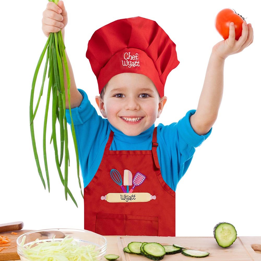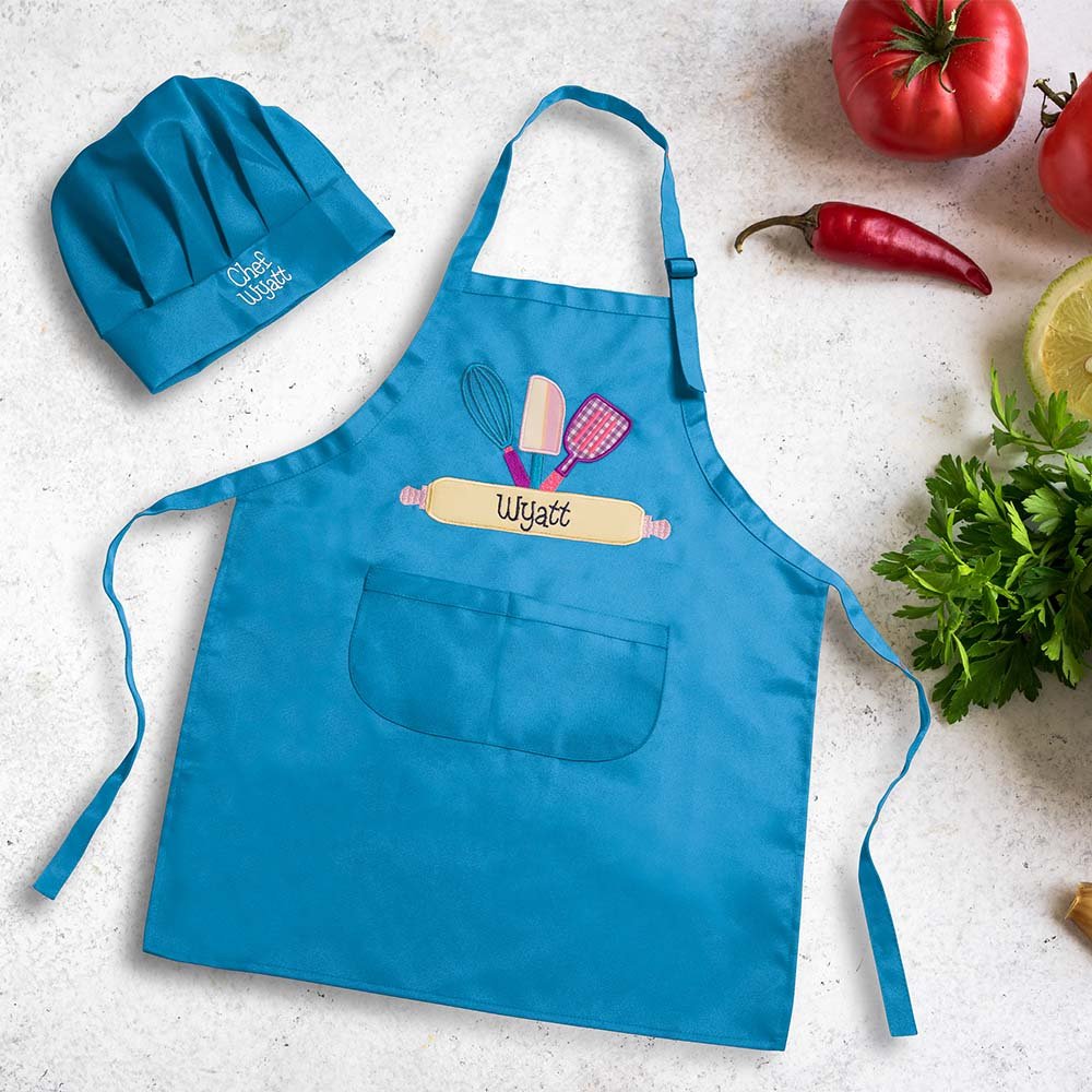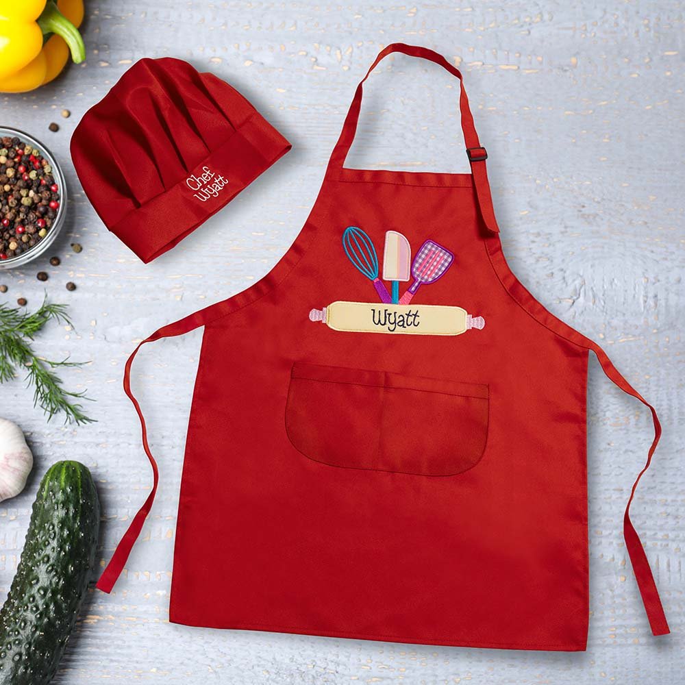 • There are three sizes: M (3-5 years old), L(6-8 years old), XL(9-12 years old). The apron has 4 colours to choose from, red, rose pink, green, and blue; there are also 4 colours for the embroidery of the text, pink, dark blue, purple, and yellow. Colourful and good quality, now choose the colour you like.