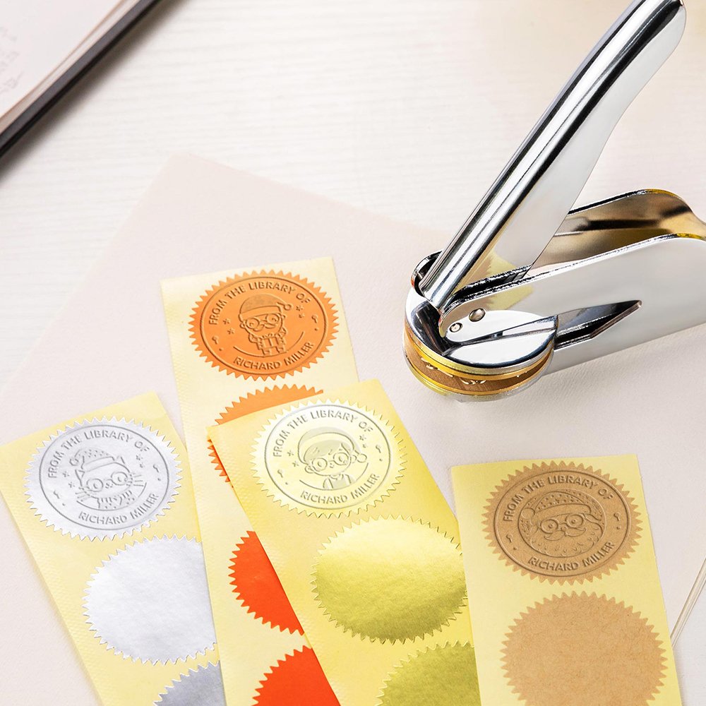 Our book embosser uses high-quality materials to ensure durability and longevity. It has been designed to withstand frequent use and produce crisp, professional-looking prints every time. In addition to being easy to use, the handle allows precise placement and a comfortable grip.