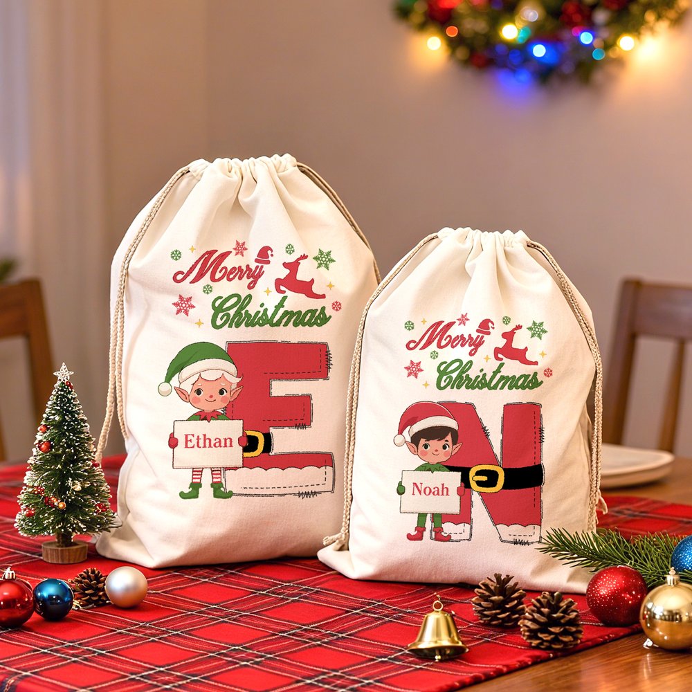 Celebrate the magic of Christmas with our personalised gift bag featuring adorable Christmas elves and customizable initials. Choose from 12 delightful elf designs and add a special name to create a truly unique gift presentation. This thoughtful design adds a personal touch to your holiday gifts, making each one feel extra special and filled with love.