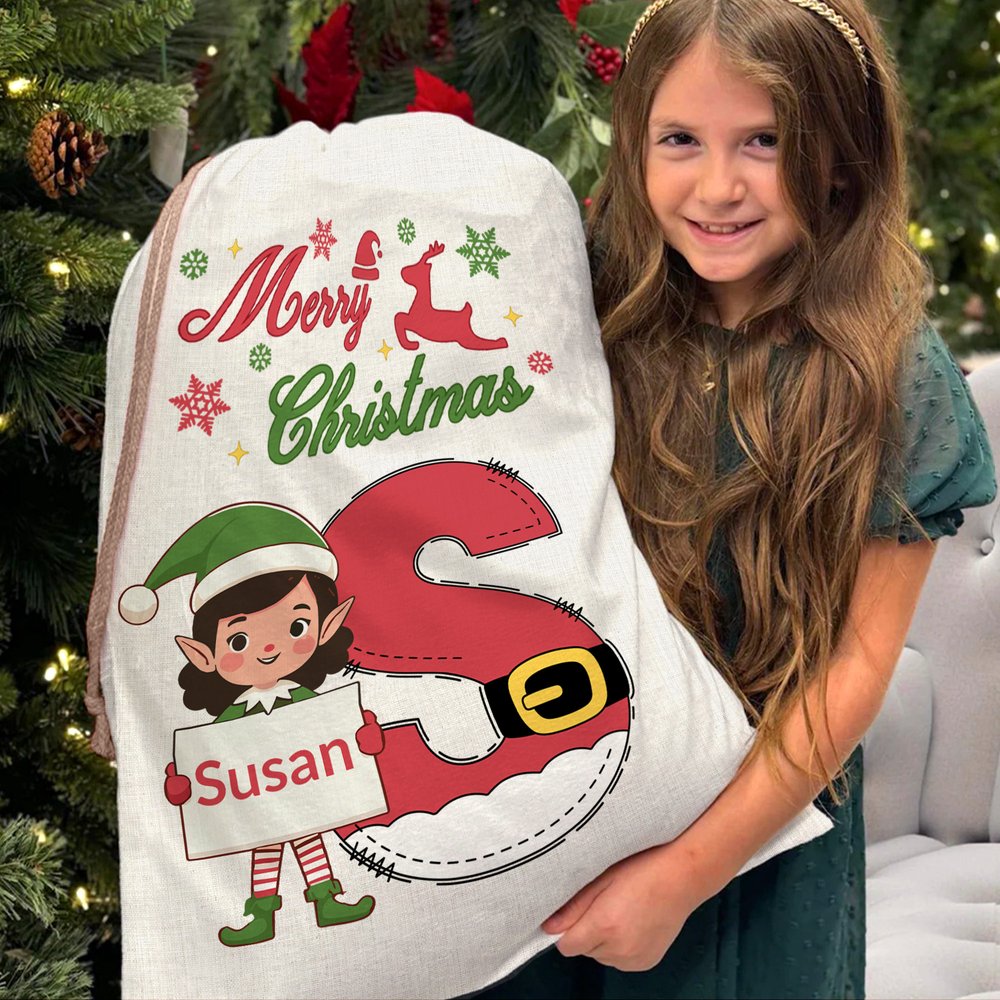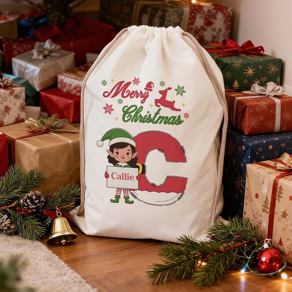 | Feature: | Drawstring Closure, Sturdy and Durable, Cute Christmas Elf Design |