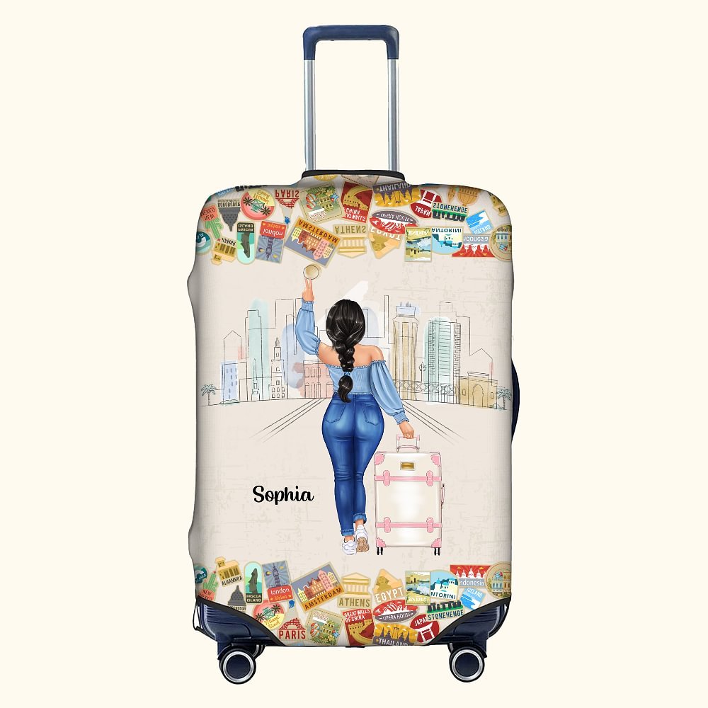 This luggage cover's city stamp pattern is inspired by iconic travel destinations worldwide. It evokes a sense of wanderlust and adds a stylish touch to her luggage. The Personalised name further enhances the cover's uniqueness and personalization.