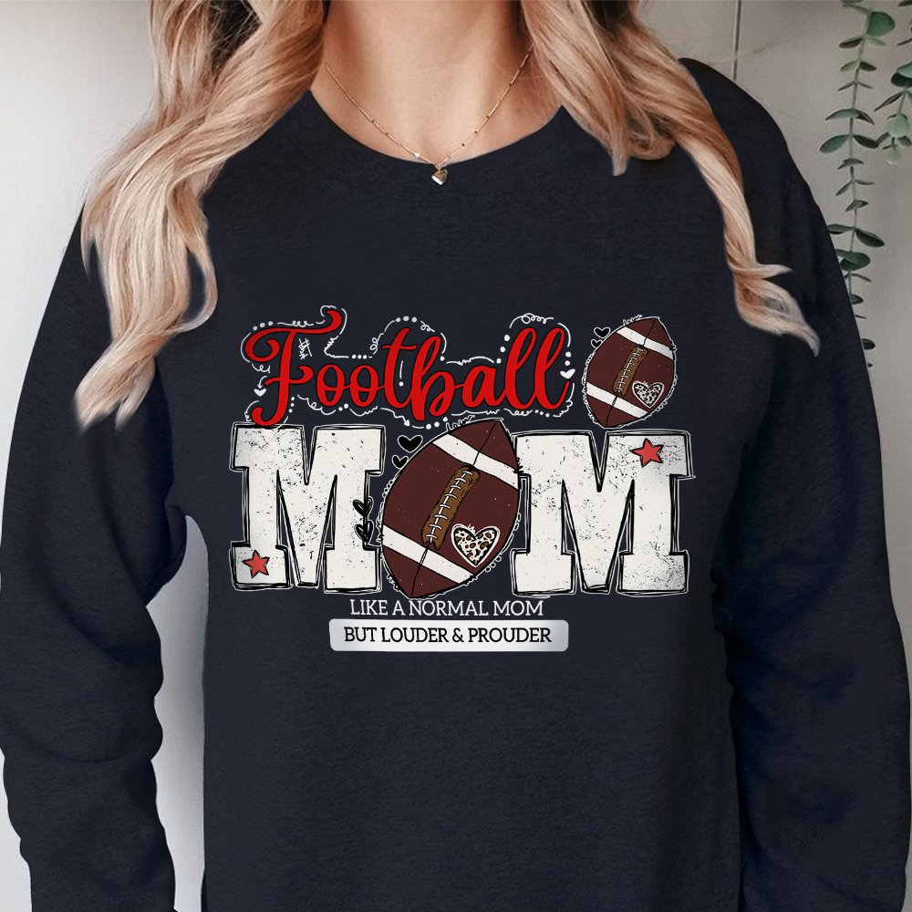 With its unique design and personalizable text, this sweatshirt makes an exceptional gift for Mother's Day or a mother’s birthday. The text pattern blends various sports balls, including football, volleyball, softball, basketball, rugby, and baseball, paying tribute to the energetic and sports loving mothers.