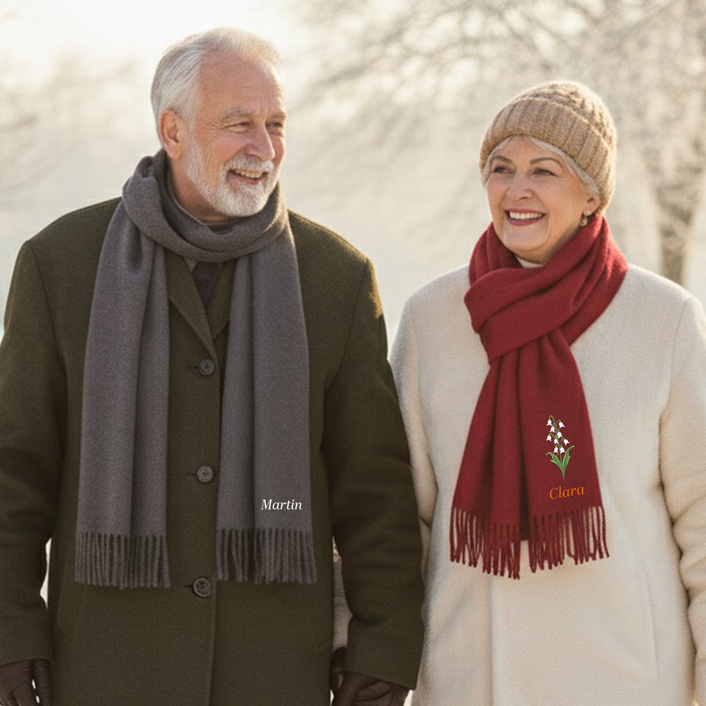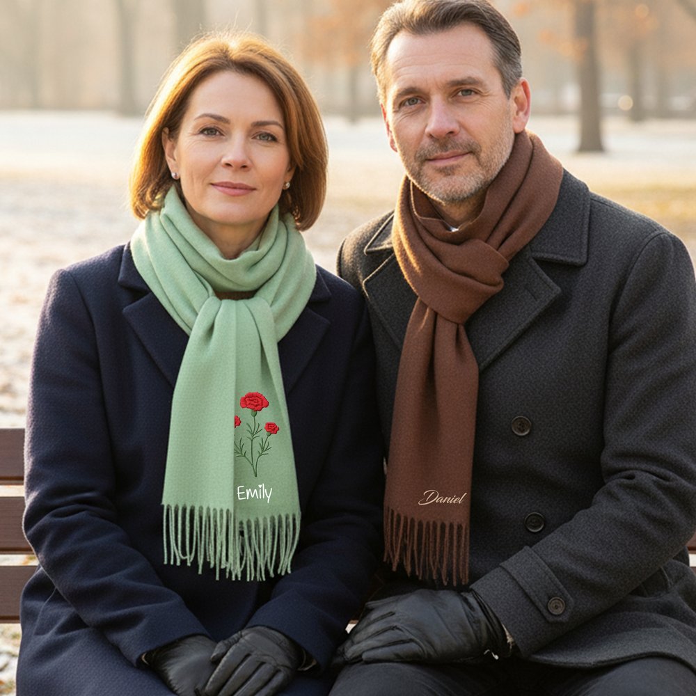 This scarf makes an excellent gift for Christmas, Valentine's Day, birthdays, or other anniversaries for family, friends, spouses, or partners. It is more than just a warm accessory; it is an expression of affection. By incorporating your birth flower into the design, this scarf transforms into a personalised piece that provides winter warmth.