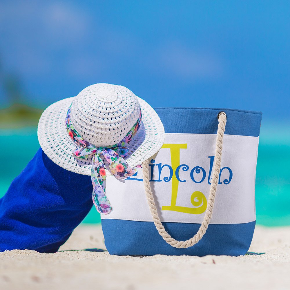 The bag's playful, colourful stripes create a fun and lively look that screams summer. The Personalised initial and name add a unique touch that reflects your individuality. The bold design ensures you'll stand out, whether lounging by the ocean or exploring new vacation spots.