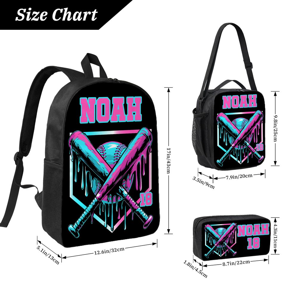 With a baseball-themed pattern, including a backpack, lunch bag, and pencil case. Freely choose font colours (6 colour combinations), customize names, and numbers. Integrate exclusive sports elements into school gear. Kids carry it to classes or team training, showing love for baseball and other sports anytime—filling campus life with “sports vitality”.