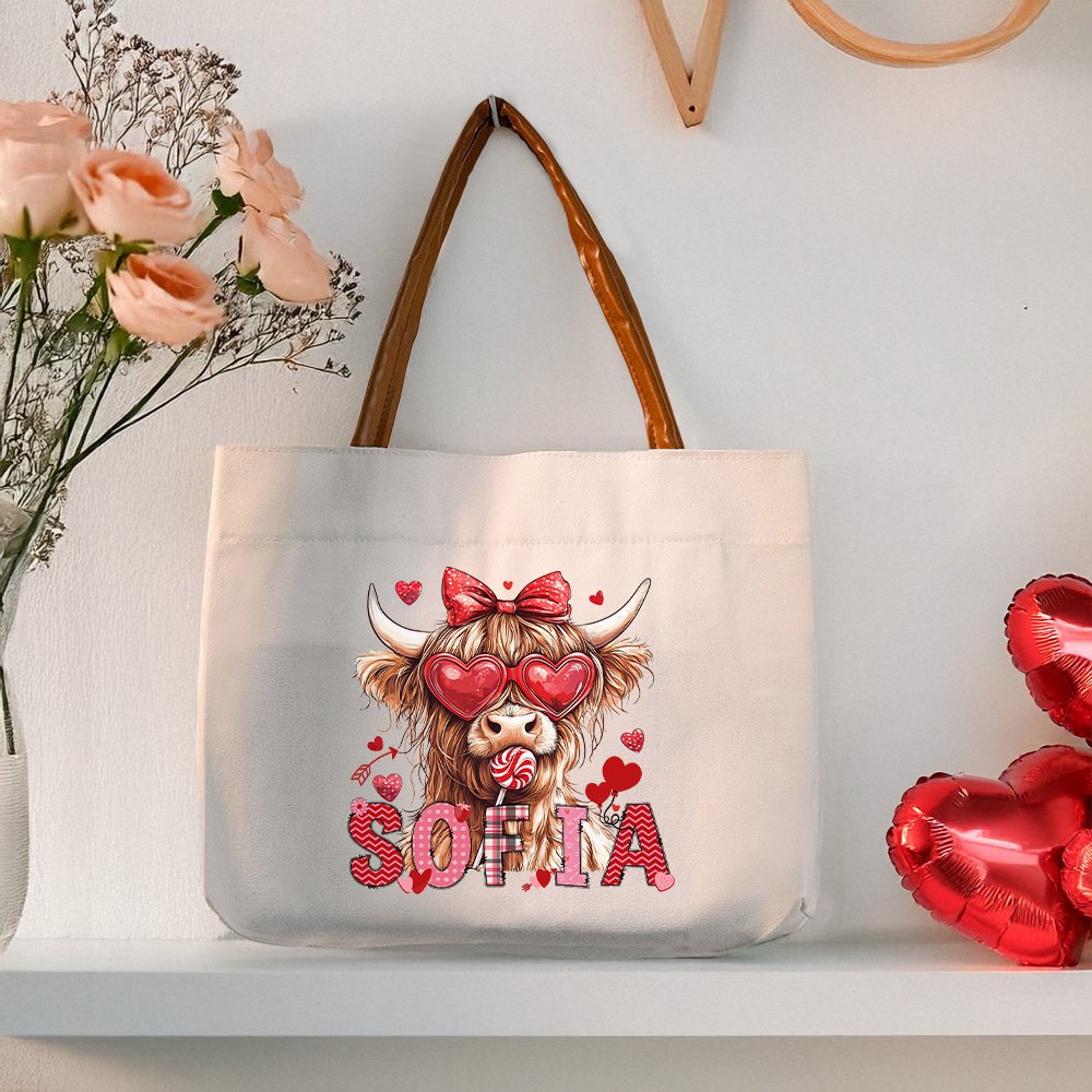 This tote makes a thoughtful gift for Highland cattle lovers. Whether it is a birthday gift or a Valentine's Day gift, it can make people feel full of heart. Customizable names add special meaning to this bag, making it even more unique and thoughtful as a gift for friends and family.