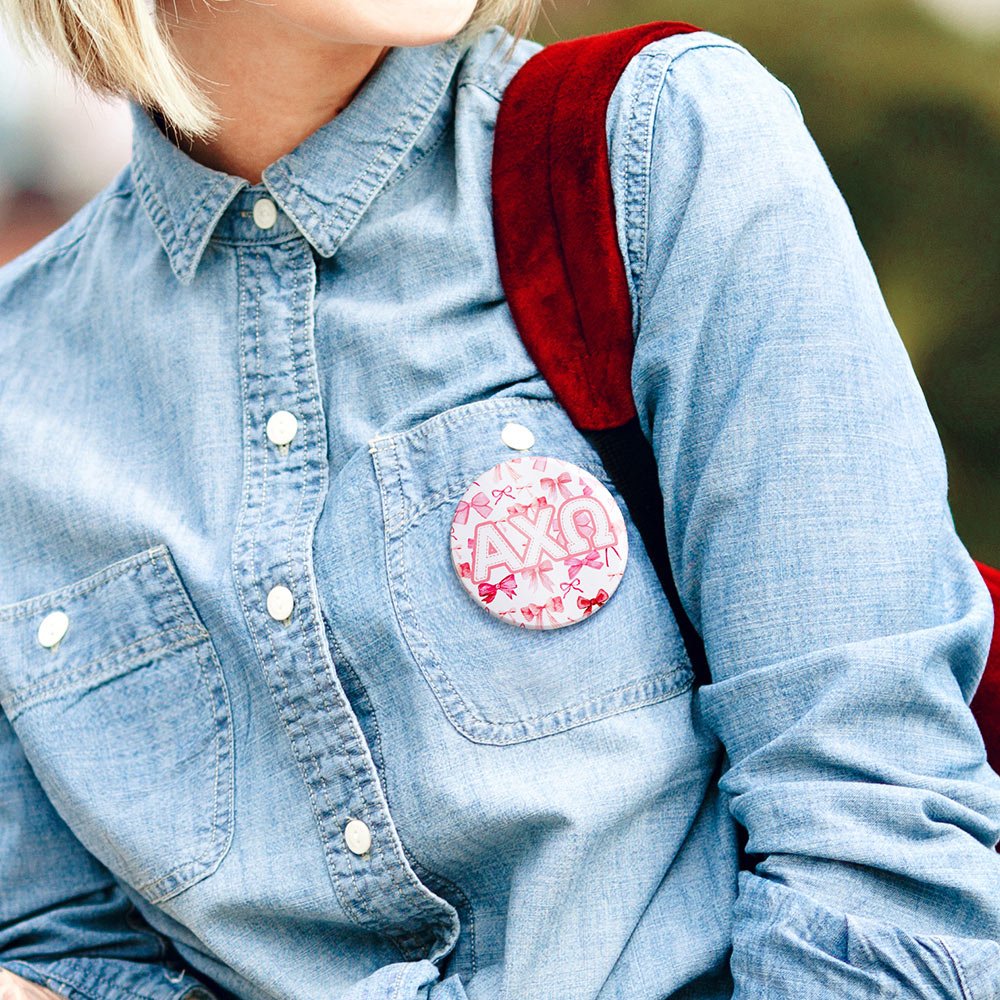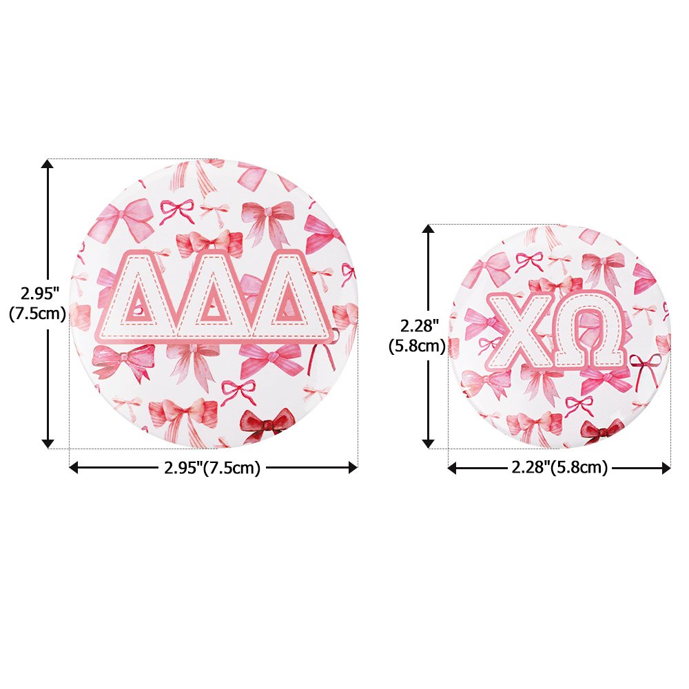 This badge features a bow design element with fresh light tones to create a sweet, girlish style and also represents the beautiful image of girls. You can Personalise the Greek letters on the badge to define your identity and enhance your sense of belonging and pride.