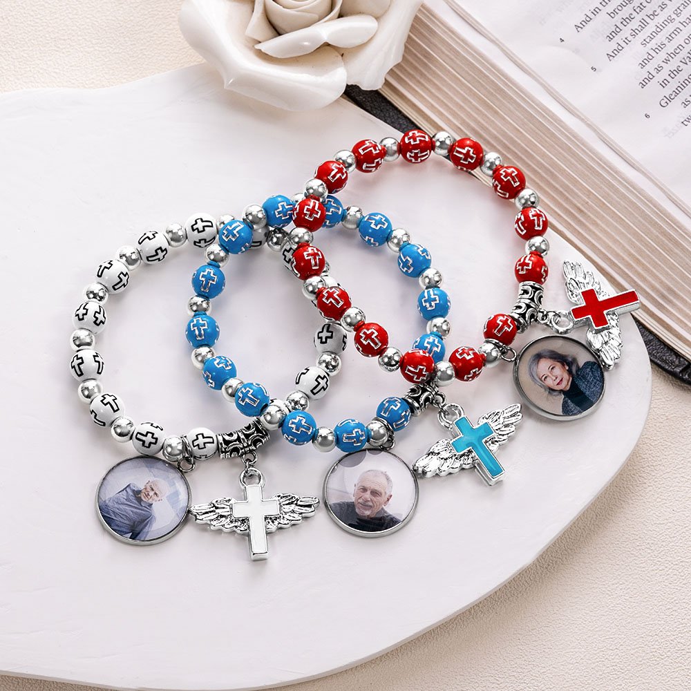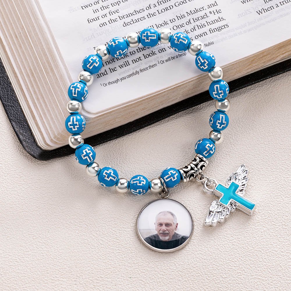 This bracelet is a thoughtful and heartwarming gift for anyone who holds religious beliefs close to their heart. It features a cross element combined with the bracelet design, with the option of a cross wing pendant, and can be customized with a photo to make it even more special.