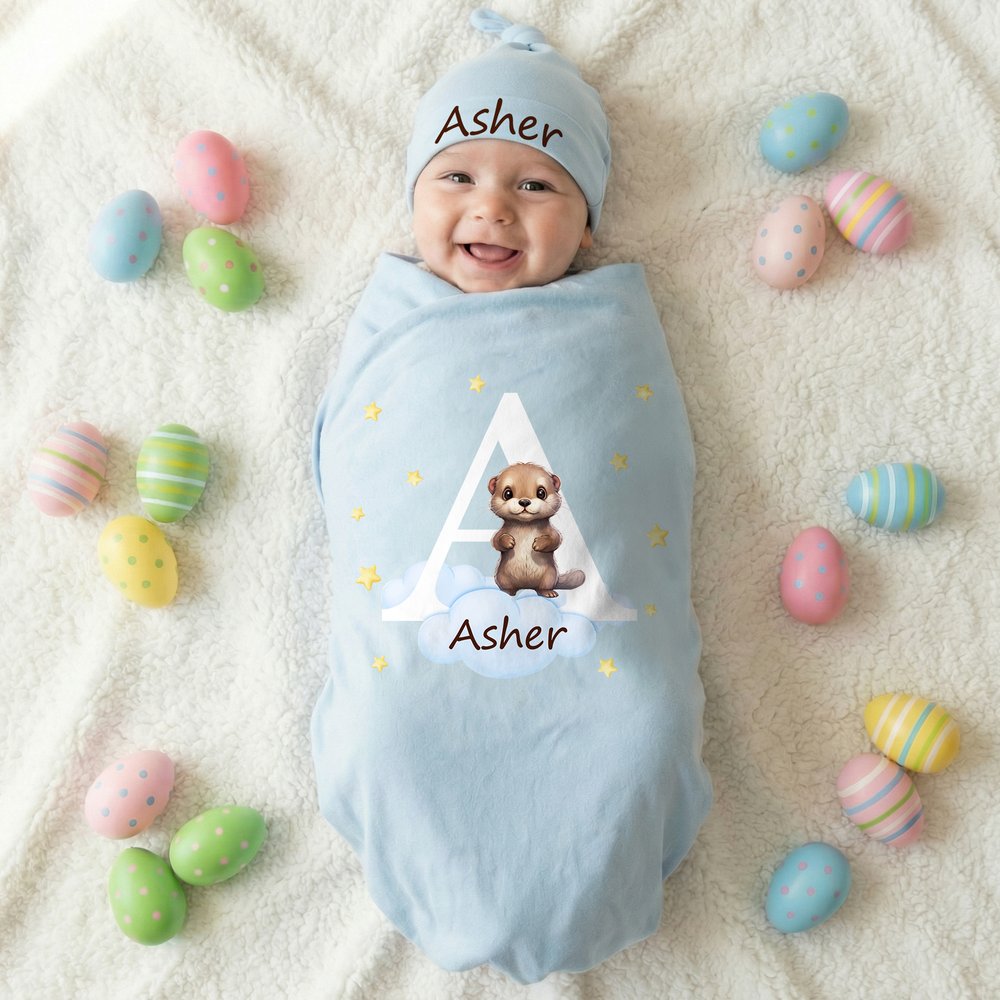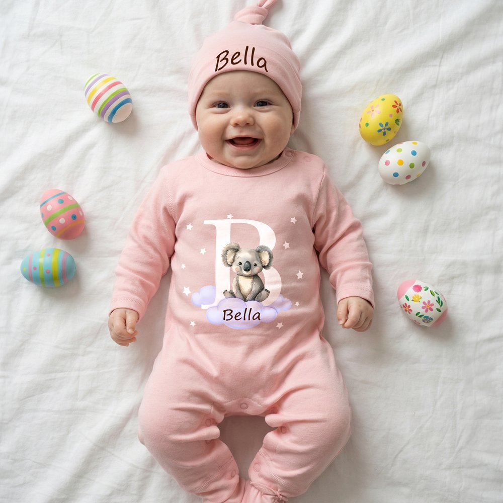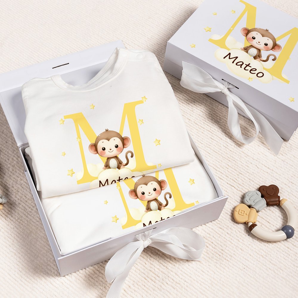 This baby outfit set showcases charming forest animal designs, crafting a warm, one-of-a-kind ceremonial feel for your little one. Accented with a cloud-shaped base and star details, it can be personalised with a custom initial and a name. The overall design is fresh, calming, and full of fairy-tale charm, wrapping the new life in gentle, loving blessings.