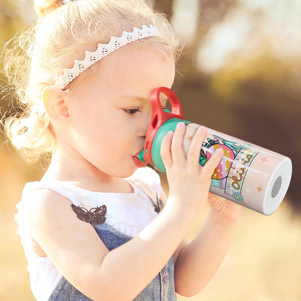 This colourful water bottle features a bright and lively apple stationery pattern as the theme, with fun cartoon elements, and rich colours, attracting children's eyes, and stimulating children's imagination and creativity. You can also customize it with your child's name to turn it into a truly unique and Personalised gift.