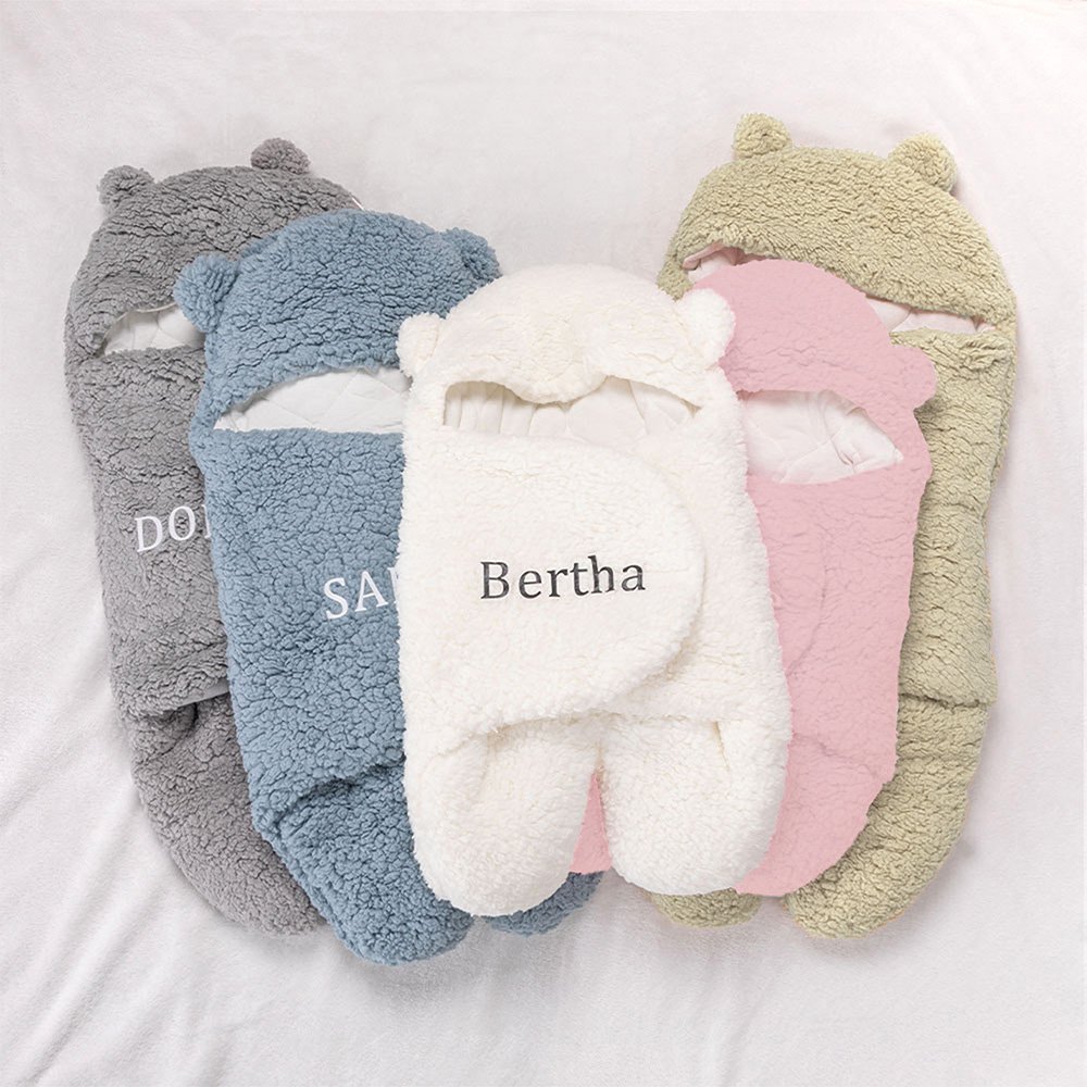 This swaddle blanket features an endearing cute bear design that will make your baby look even more adorable. The custom name adds a special and meaningful touch, turning a practical item into a cherished keepsake.