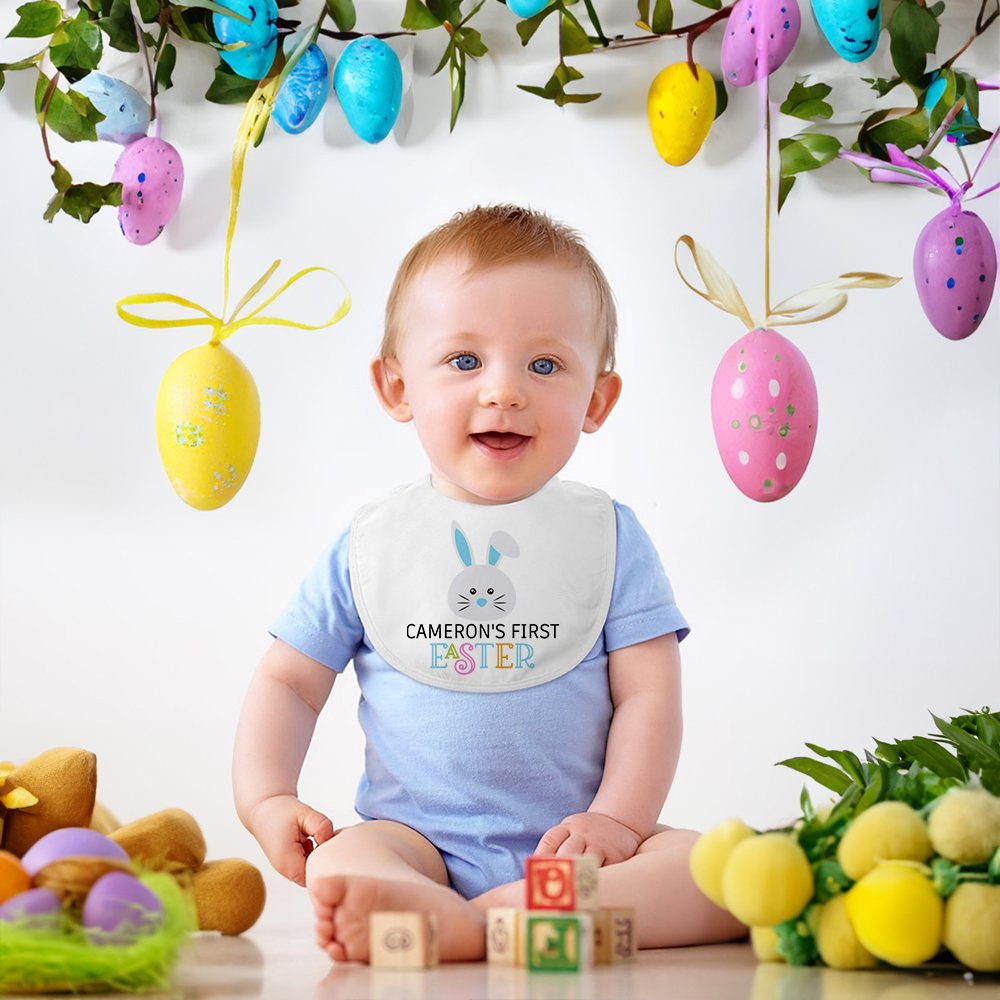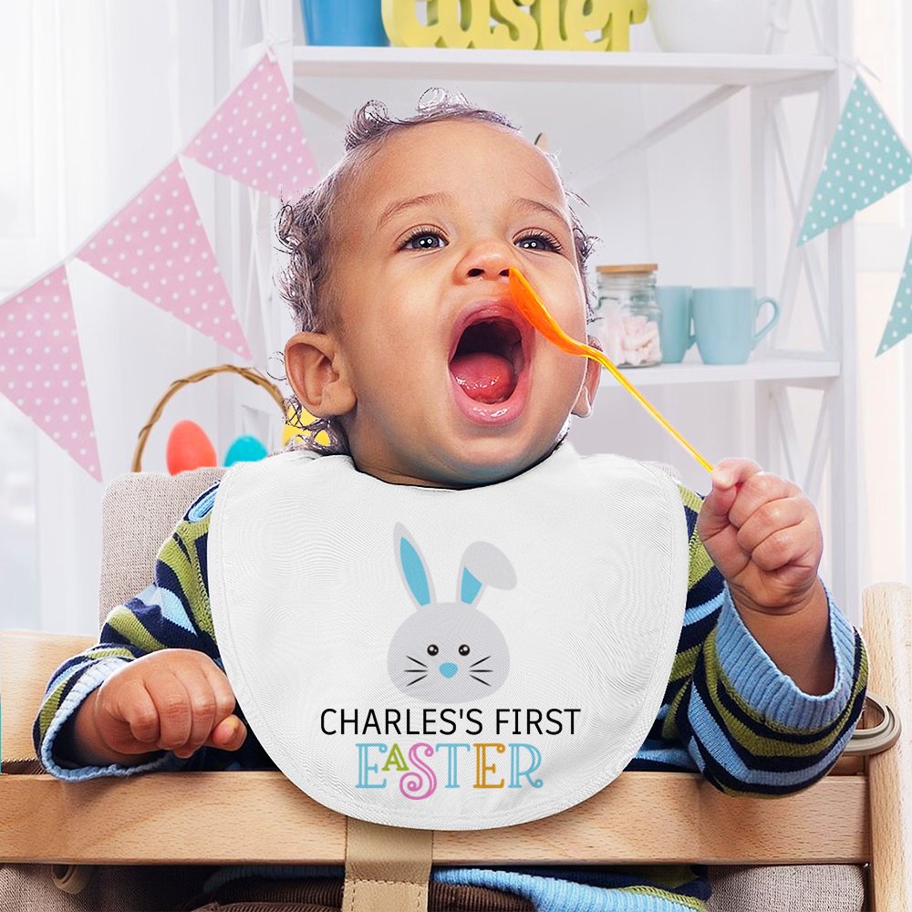 The adorable bunny-themed design makes this bib the perfect Easter gift for babies. The ears have 2 colours, pink and blue, to choose from. You can customize the baby's name above, leaving a good memory of the exclusive baby. Its playful and festive look brings the joy of the holiday to your little one's mealtime.