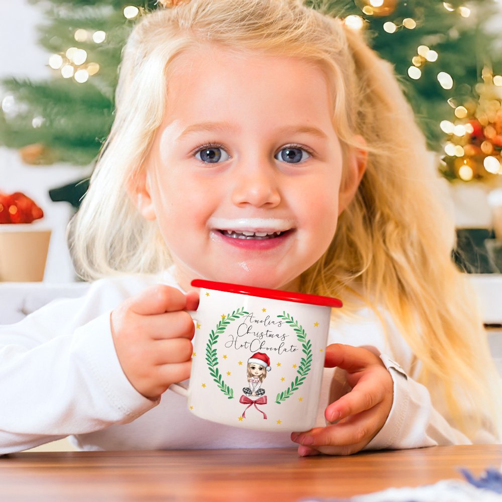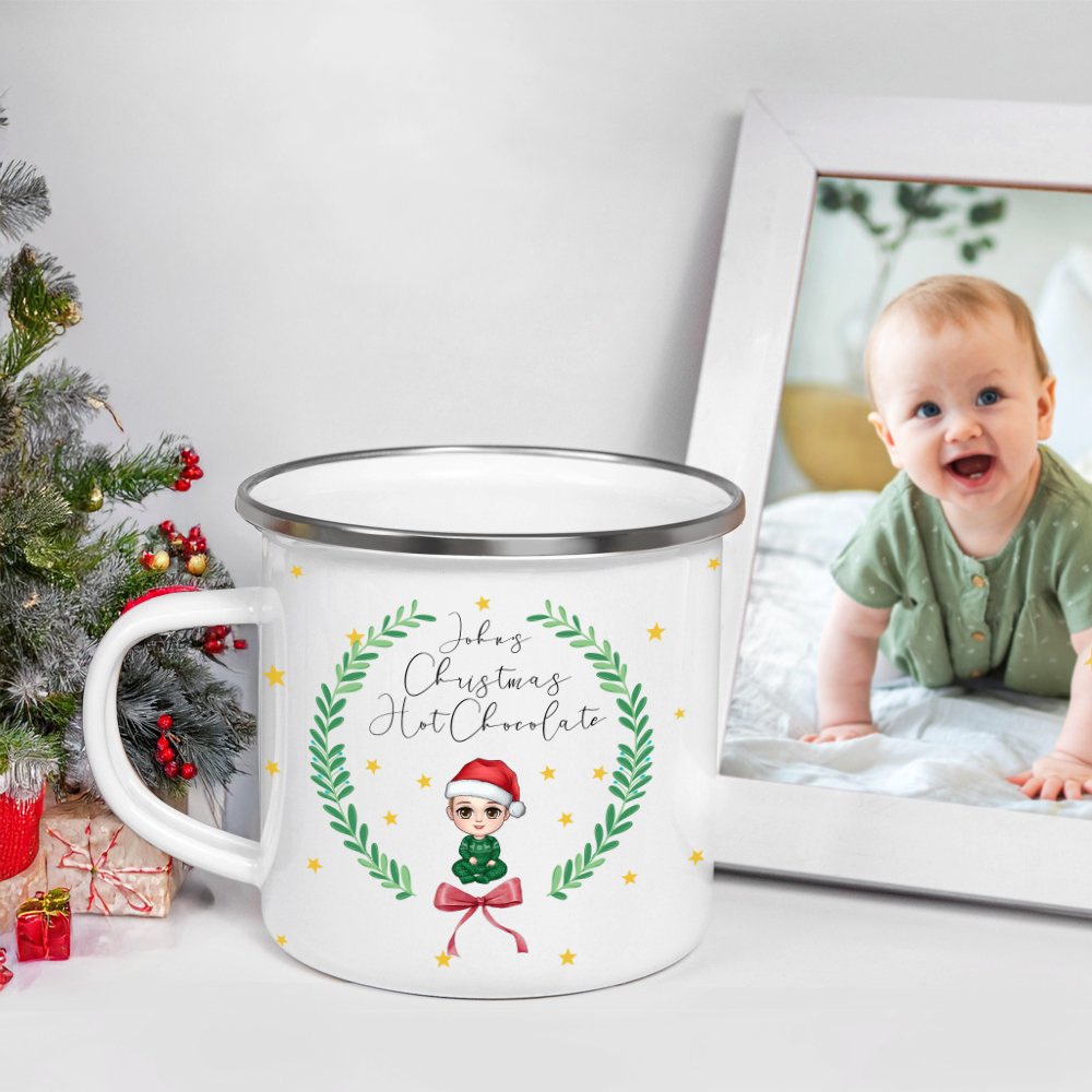This adorable 12oz enamel cup features a cute cartoon character design, perfect for adding a touch of fun and whimsy to your hot chocolate or favorite beverages. Personalise this enamel cup with a name, making it an extra special gift for your loved ones.