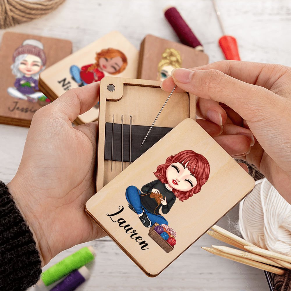 Personalised Cartoon Crochet Knitting Mom Grandma Wooden Needle Storage Box with Magnet and Name Christmas Birthday Gift for Women Craft Lovers