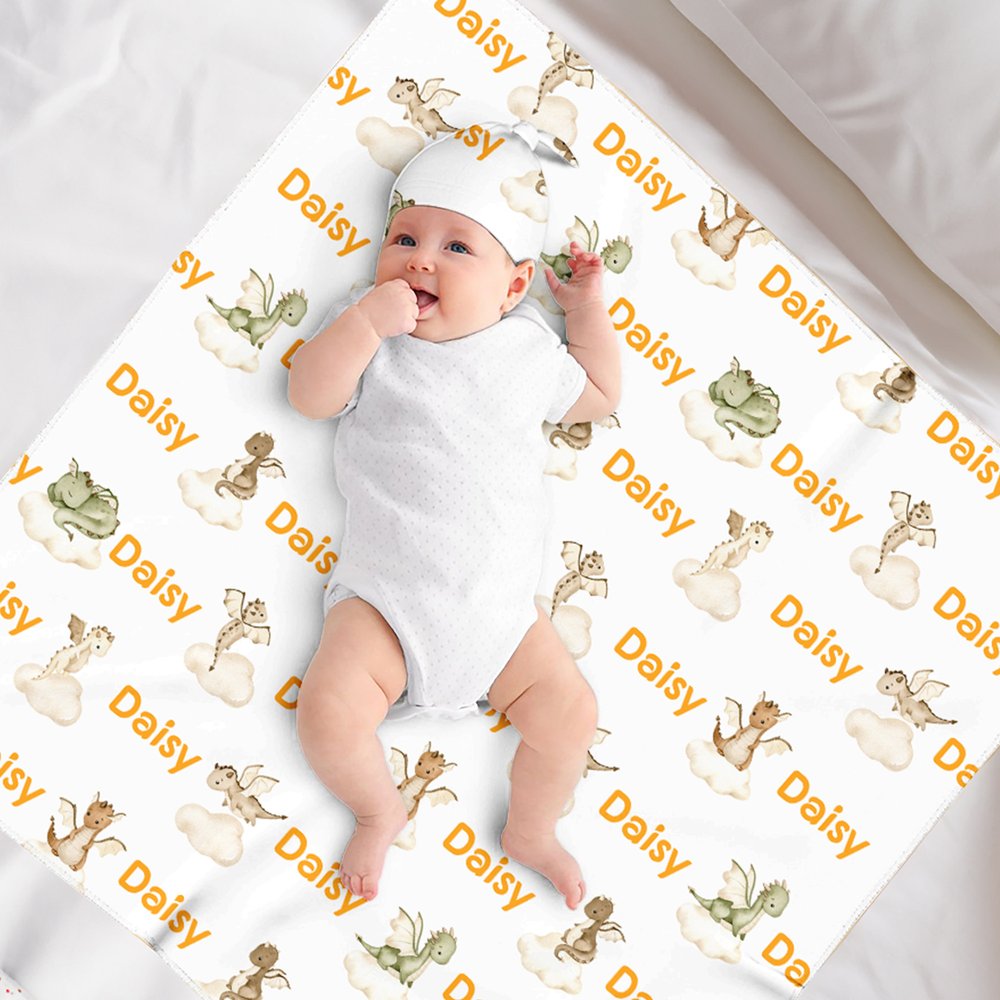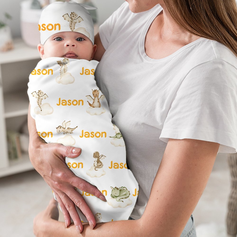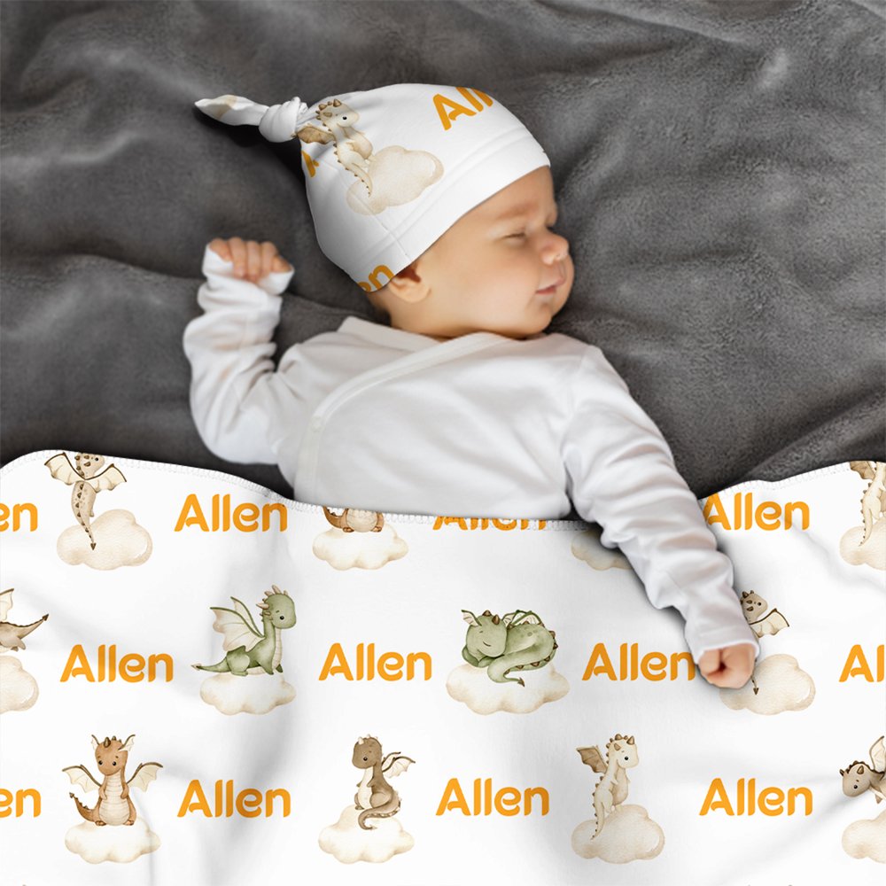 You can input a personalised name, making the set uniquely tailored for your baby. The combination of cute dinosaur and cloud patterns with the baby's name creates a one-of-a-kind gift that's full of love and personal touch.