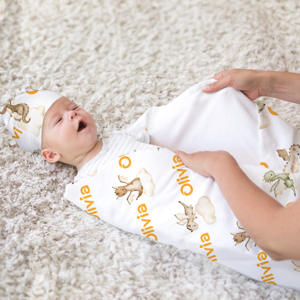 Perfect as a swaddle for keeping the baby snug and secure during sleep. The matching beanie provides extra warmth for the baby's head. Great for baby showers, daily care, or as a cozy outfit for the baby at home.