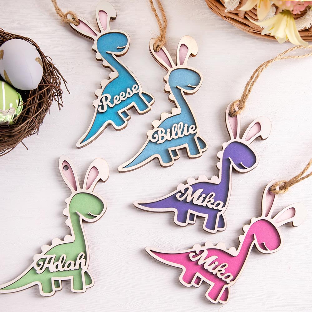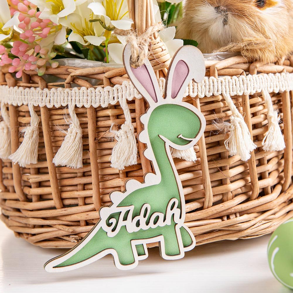 Featuring a cute dinosaur with bunny ears, these tags make a great gift on their own or fit into any Easter basket, Easter box, gift bag, or decoration display. It not only has five beautiful colours for your choice but also can customize your name, this charming little tag is the ultimate decoration or gift for the season.
