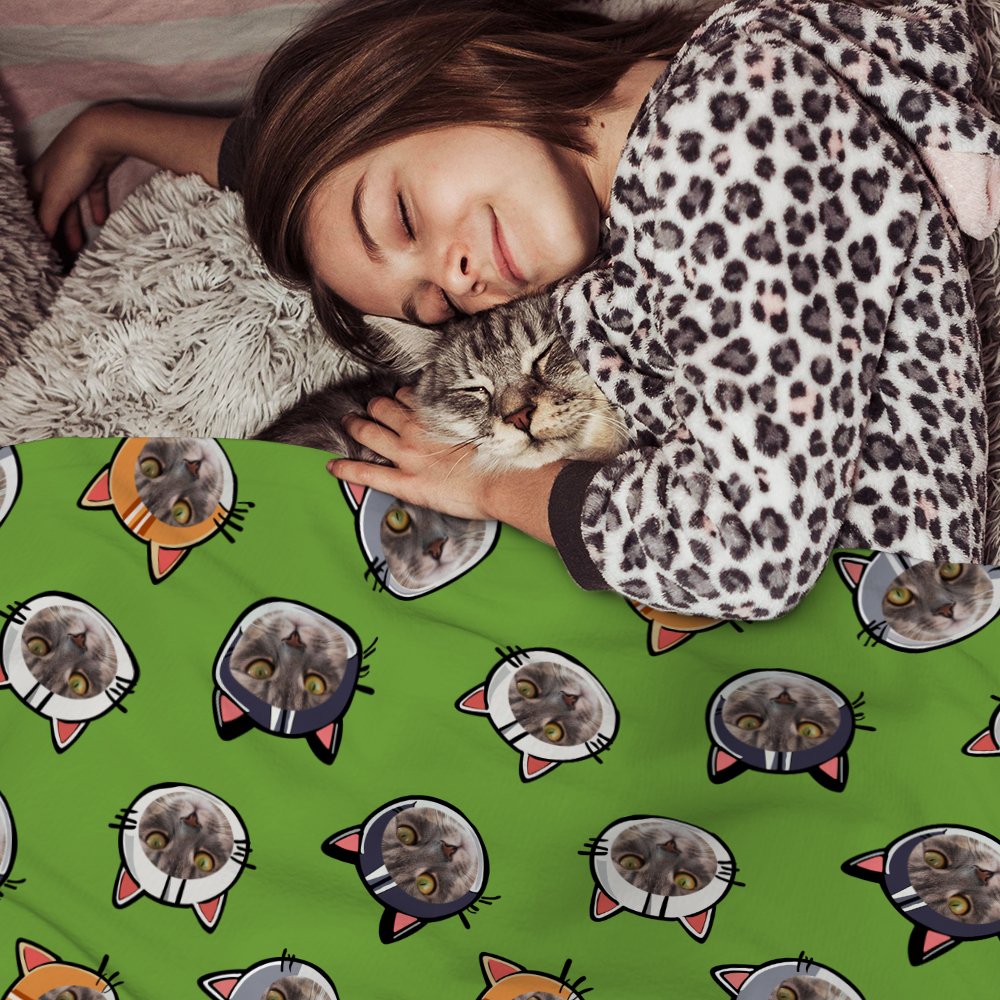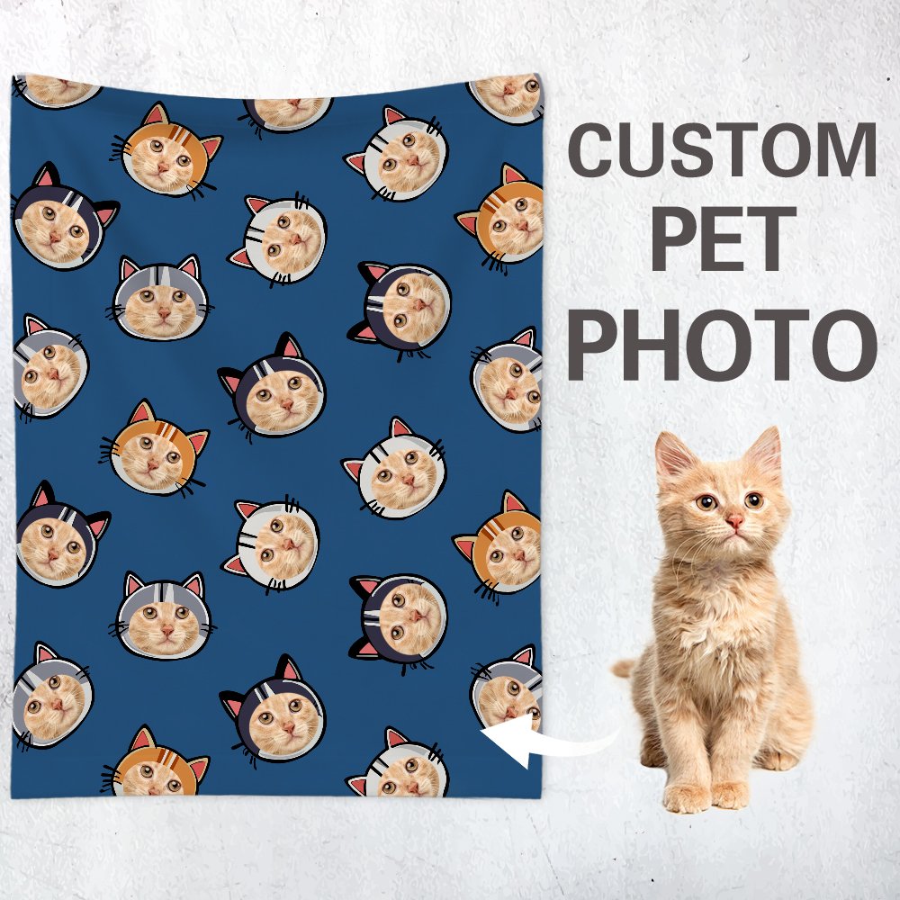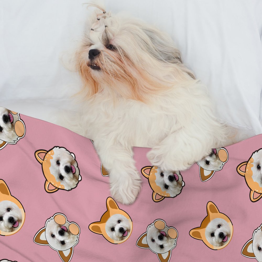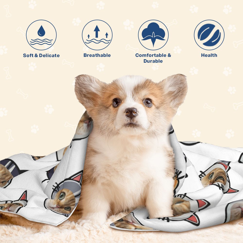 Personalised Cute Dog Cat Ears Soft Blanket with Pet Photo Portrait Birthday Gift for Pet Lover Owner