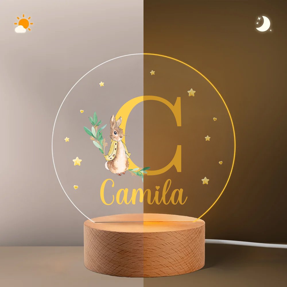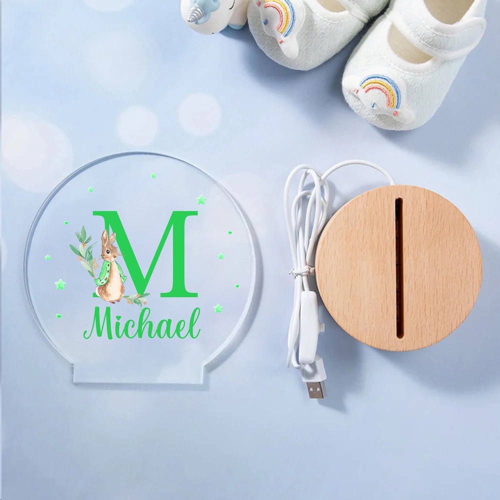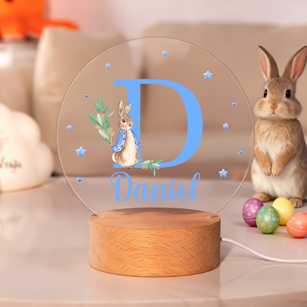 Personalised Cute Easter Bunny Initial Acrylic Night Light with Name and Wooden Base Room Decor Easter Birthday Gift for Kids