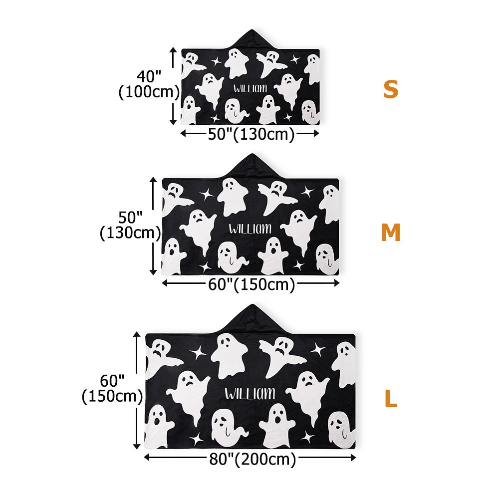 This hooded blanket features cute ghost patterns, perfect for Halloween. You can customize it with a name, adding a unique touch. The design brings a strong horror season and a spooky atmosphere.