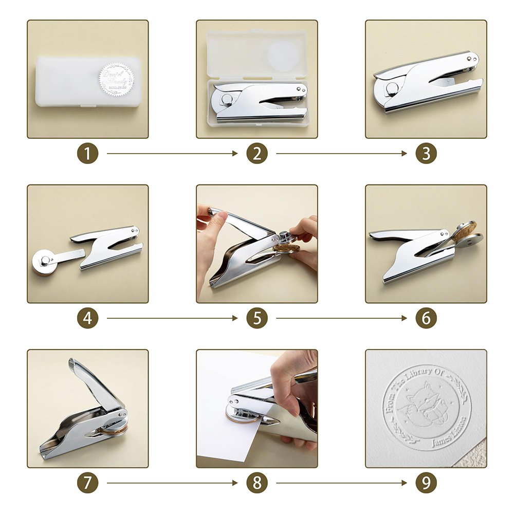 | Care: | • Wipe the embosser with a soft, dry cloth after each use to remove any dust, debris, or ink residue. Avoid using harsh chemicals or abrasive cleaners that could damage the surfaces. • When not in use, store the embosser in a clean and dry environment. Avoid exposure to extreme temperatures, humidity, or direct sunlight. • When handling the embosser, be gentle and avoid excessive force. This helps prevent damage to the embossing plates, handle, and other components. |
