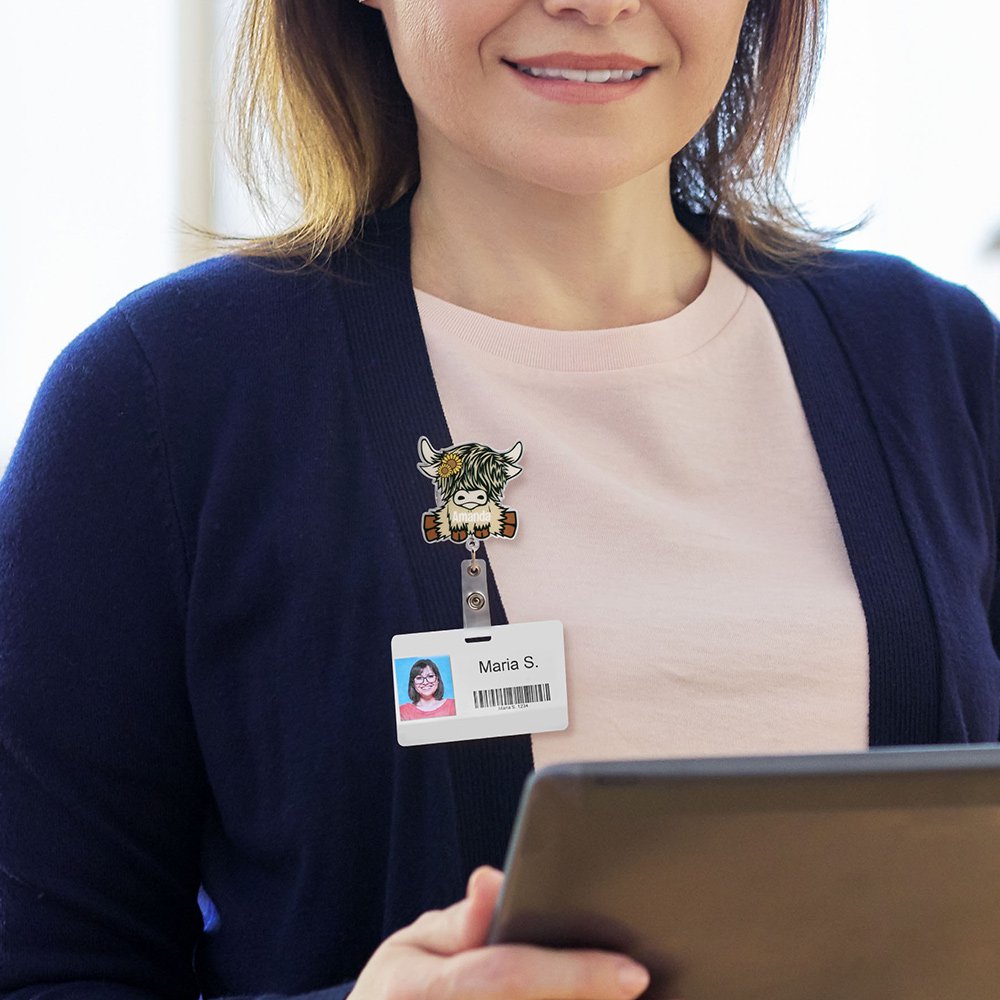 This badge reel is not only powerful, but it also adds a touch of personality to your work attire. The lovely colour scheme and detailed design make it an eye-catching accessory that is sure to get compliments from your coworkers.