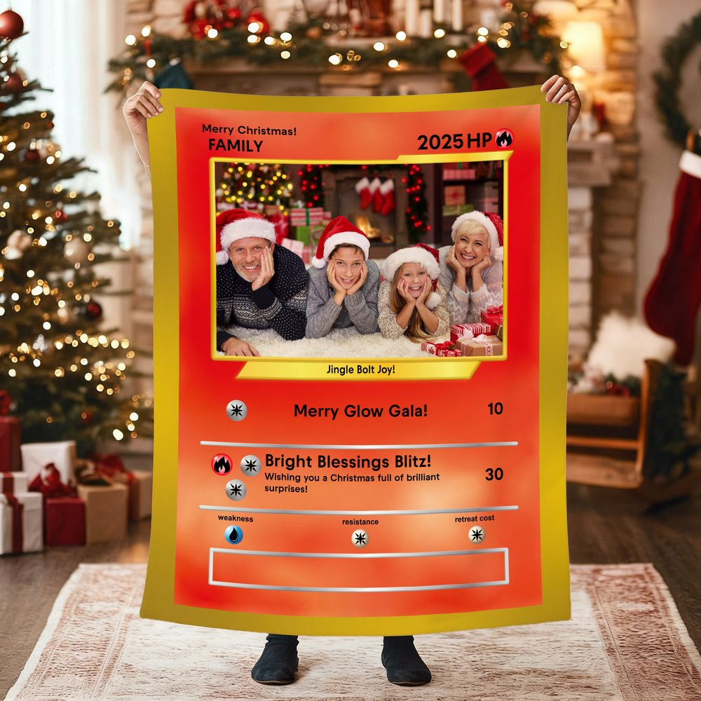 This unique throw blanket is inspired by collectible game cards, blending playful and nostalgic elements. It features printed photos and customizable text, allowing you to upload pictures of your pets, family, or memorable moments to create a personalised blanket that is truly one-of-a-kind.