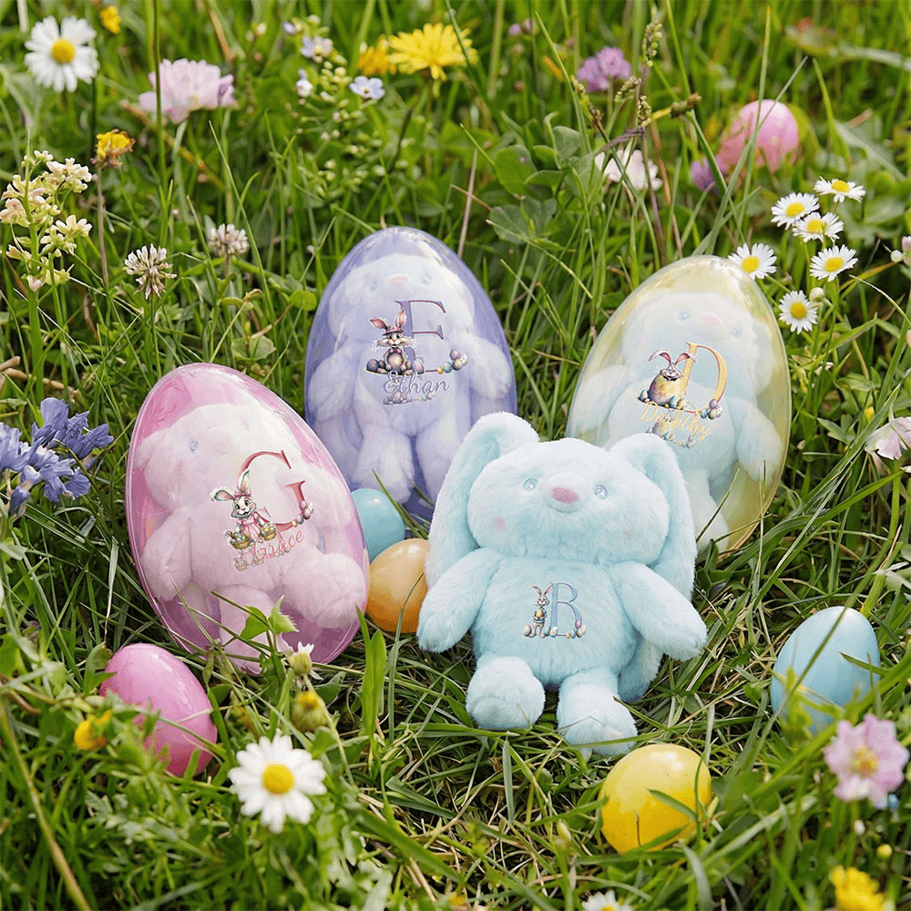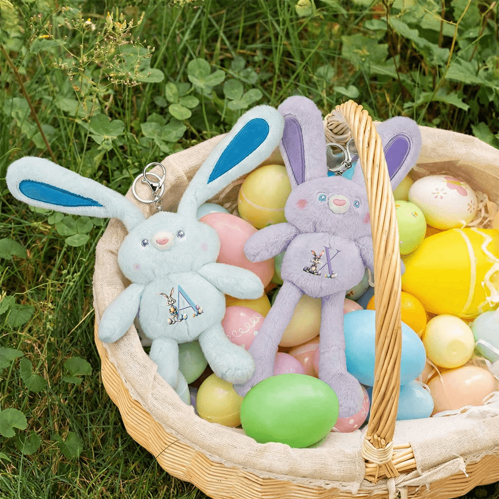 This set includes a cute plush bunny pendant and a jumbo Easter egg. You can choose different styles based on your needs and preferences. Additionally, to make your bunny pendant and egg more uniquely charming, we offer a name customization service. You can provide your name and initial, and we will customize the text on the rabbit and the Easter egg.