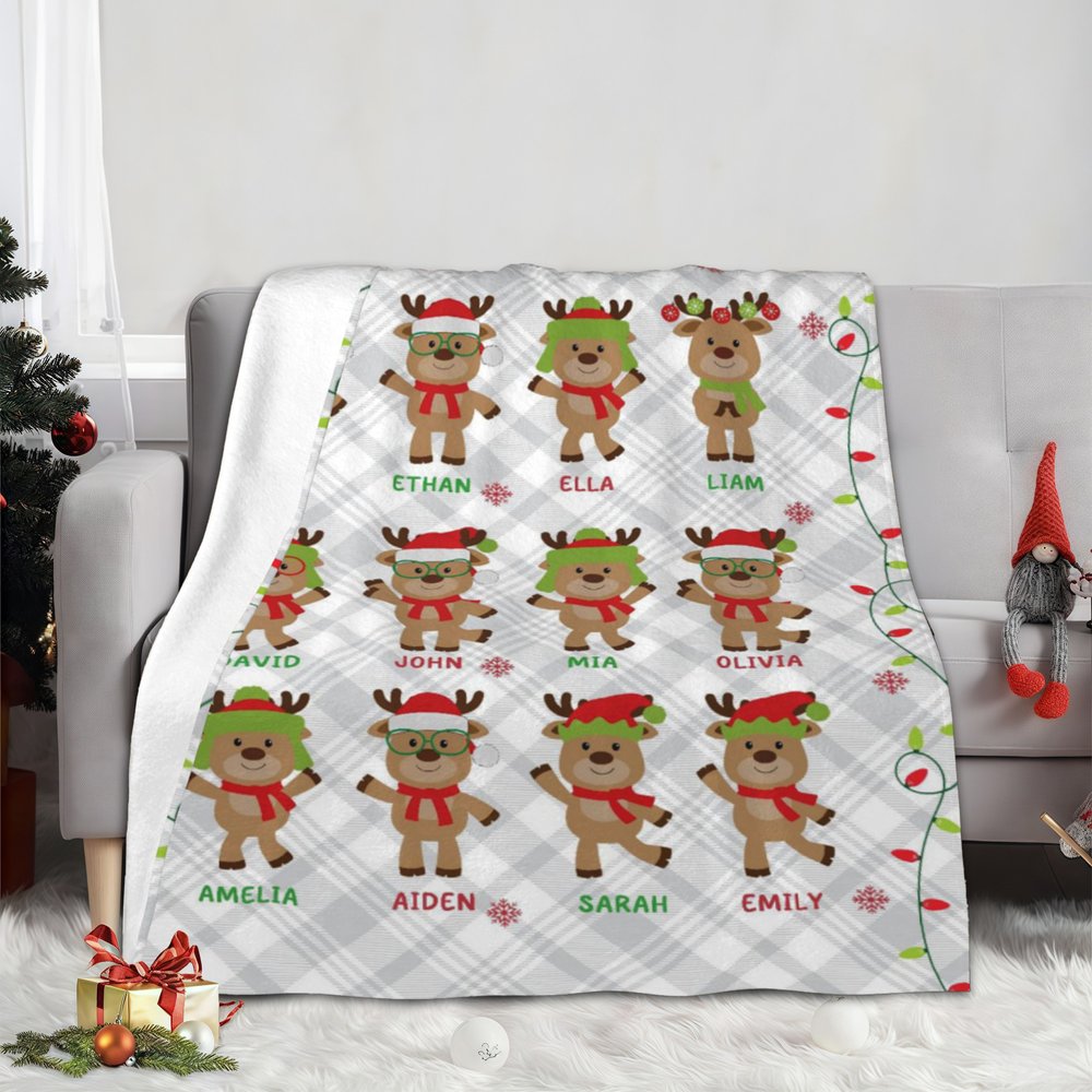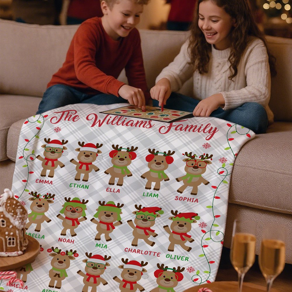 This Christmas-themed blanket features adorable reindeer figures. You can customize it with 1 to 15 reindeer, each representing a family member, for a unique family-themed piece.