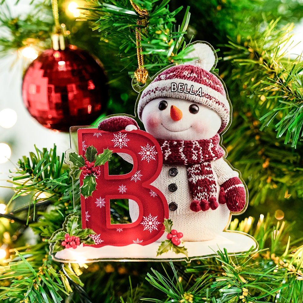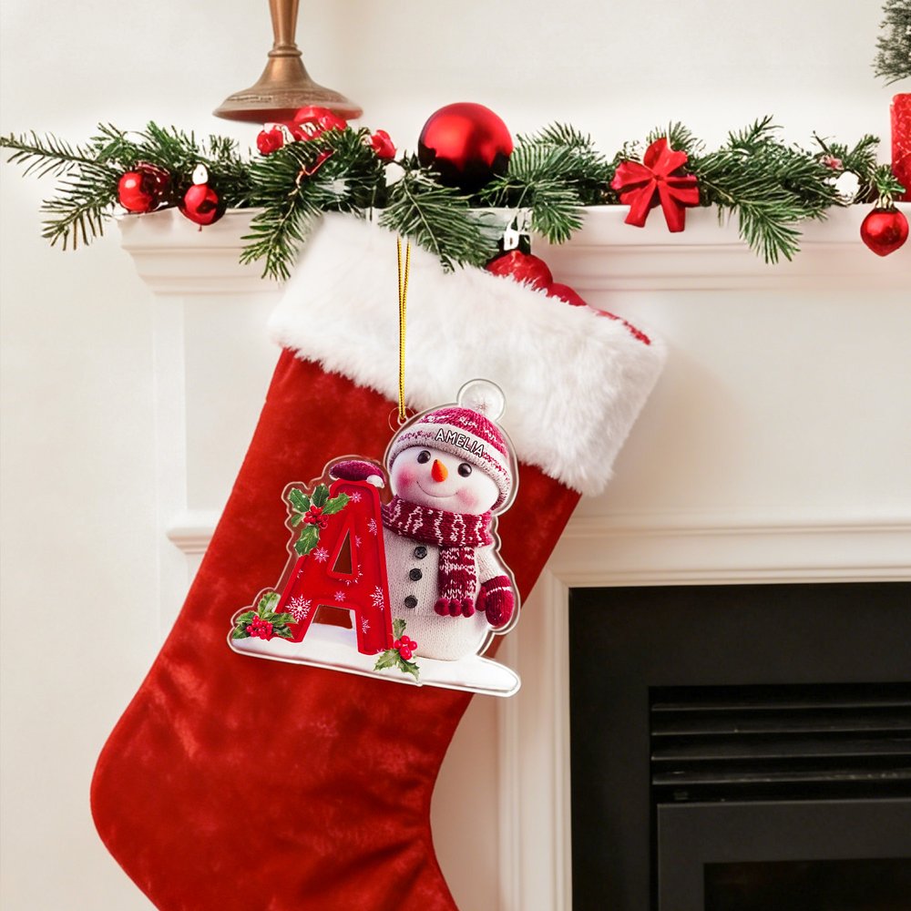 Personalised Cute Santa Hat Snowman Letter Acrylic Ornament with Name Christmas Tree Decor Holiday Gift for Family Kids