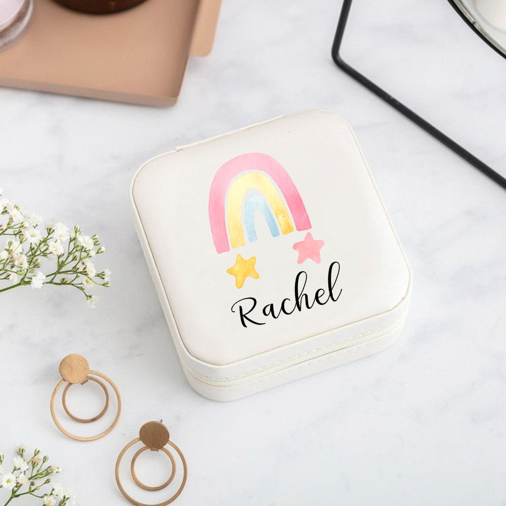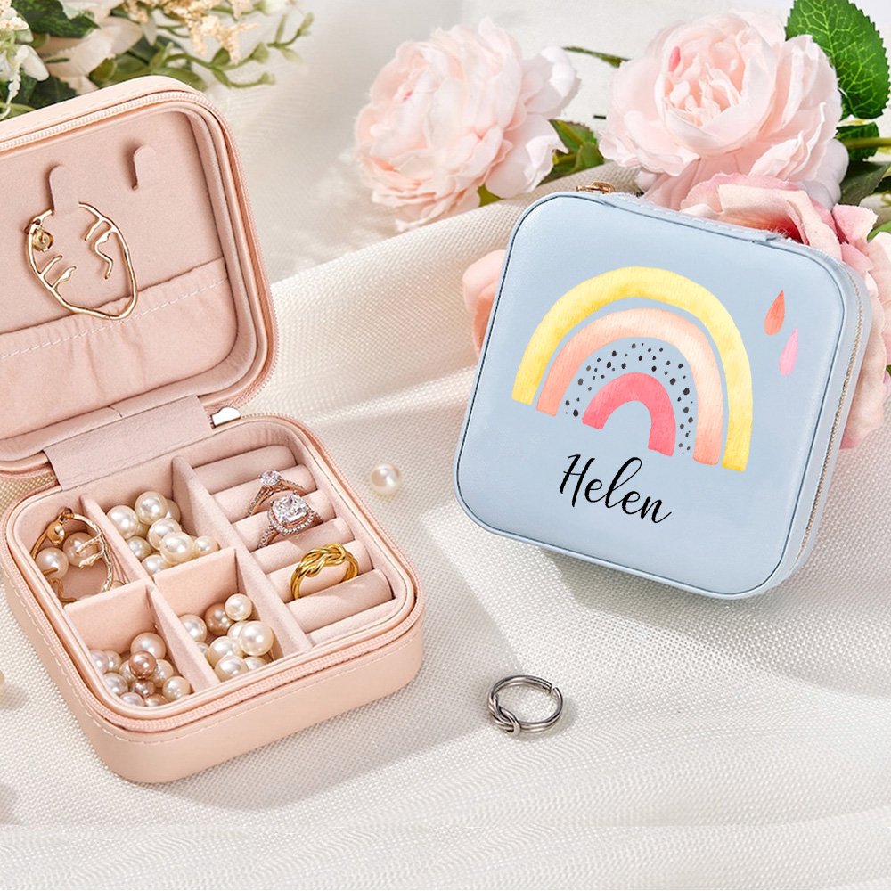 The surface of the jewellery box is printed with a colourful watercolour rainbow design, which is not only eye-catching but also brings a pleasant and warm feeling. Each jewel box can be Personalised to your name, making each one a unique souvenir.